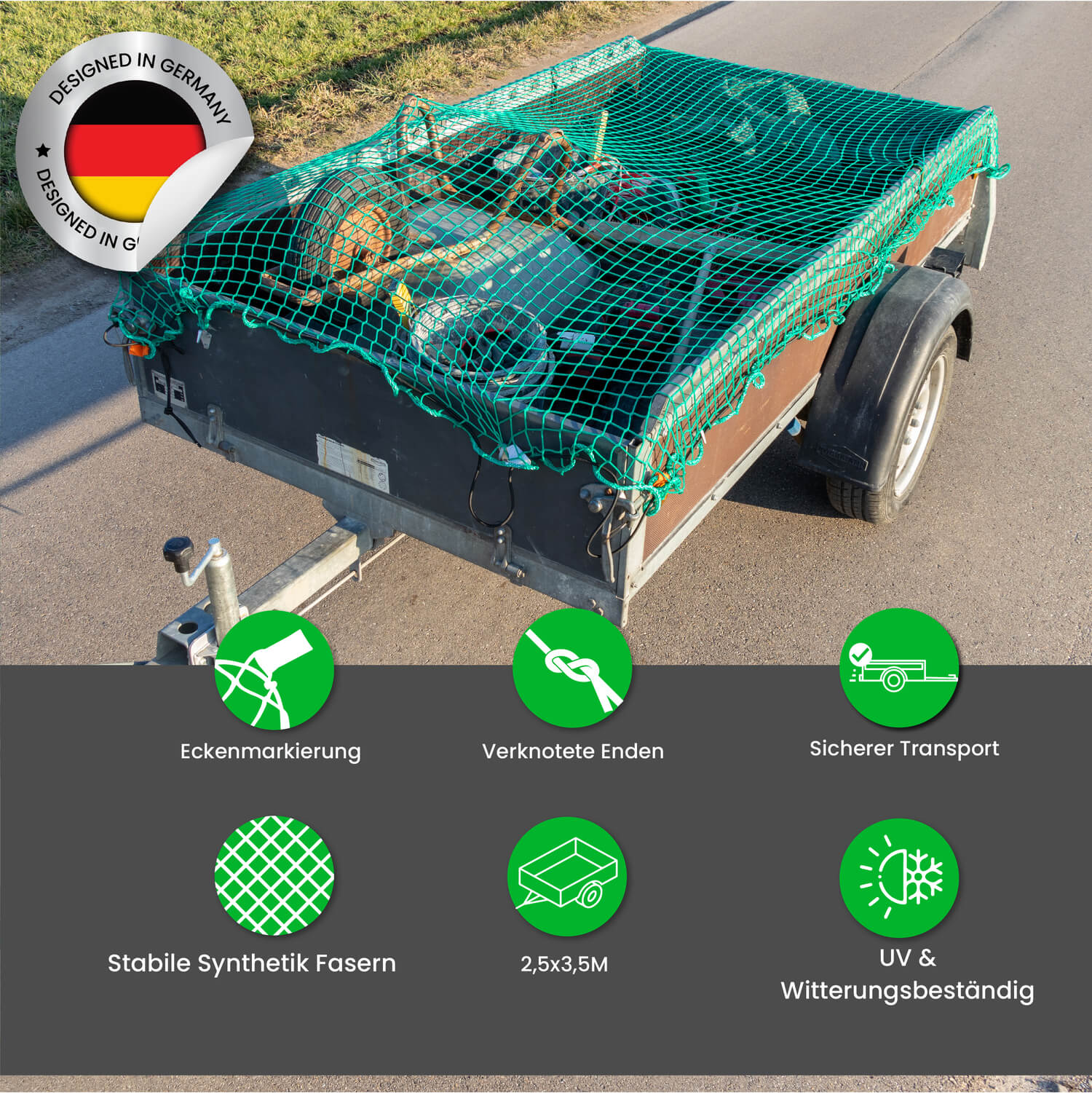 | Lieferumfang: | Netz für Anhänger, Gummiseil, Markierung der Ecken |