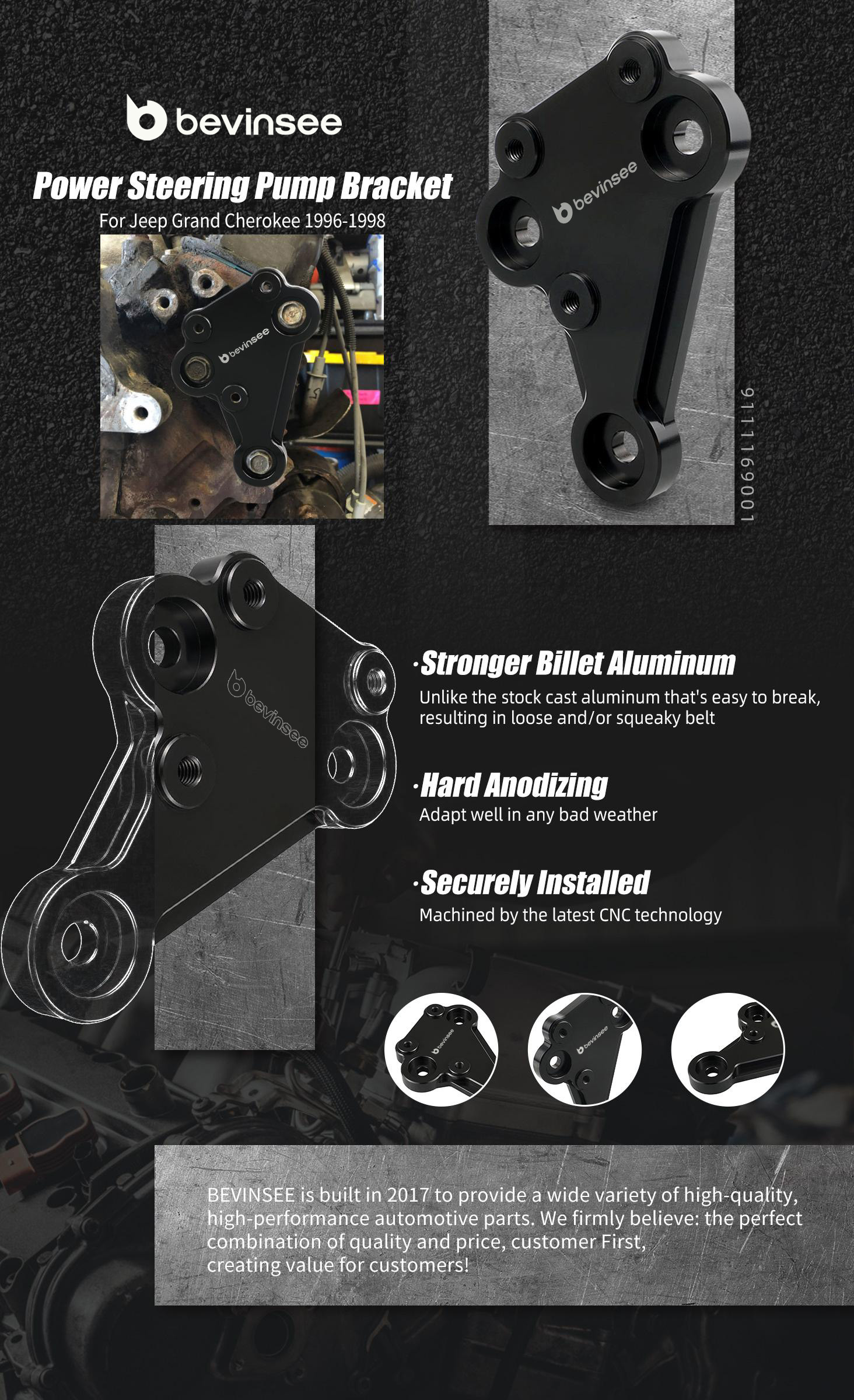 BEVINSEE Power Steering Pump Bracket for Jeep Grand Cherokee 1996-1998