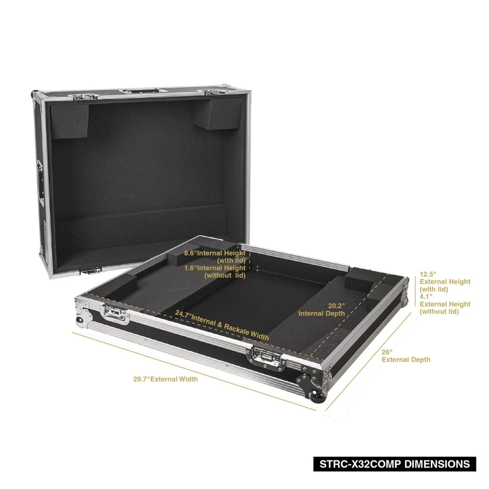 The Sound Town STRC-X32COMP is an ATA mixer case designed to fit and protect the Behringer X32 Compact digital mixer. With its robust 9mm plywood construction, the STRC-X32COMP safeguards your mixer while you are on the go. Fortified with recessed twist latches and interior foam protection, the flight case gives your X32 Compact mixer the ultimate protection it deserves. |