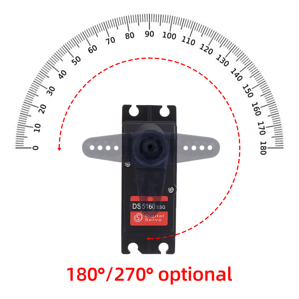 4.Support High Voltage - the best volts is 7.4V, It’s recommended to use 2S battery for power supply 6-8.4V The working angle of the servo is 180 degree or 270 degree (PWM: 500us-2500us)