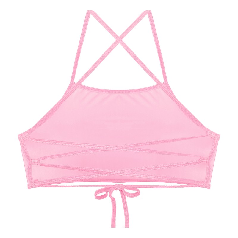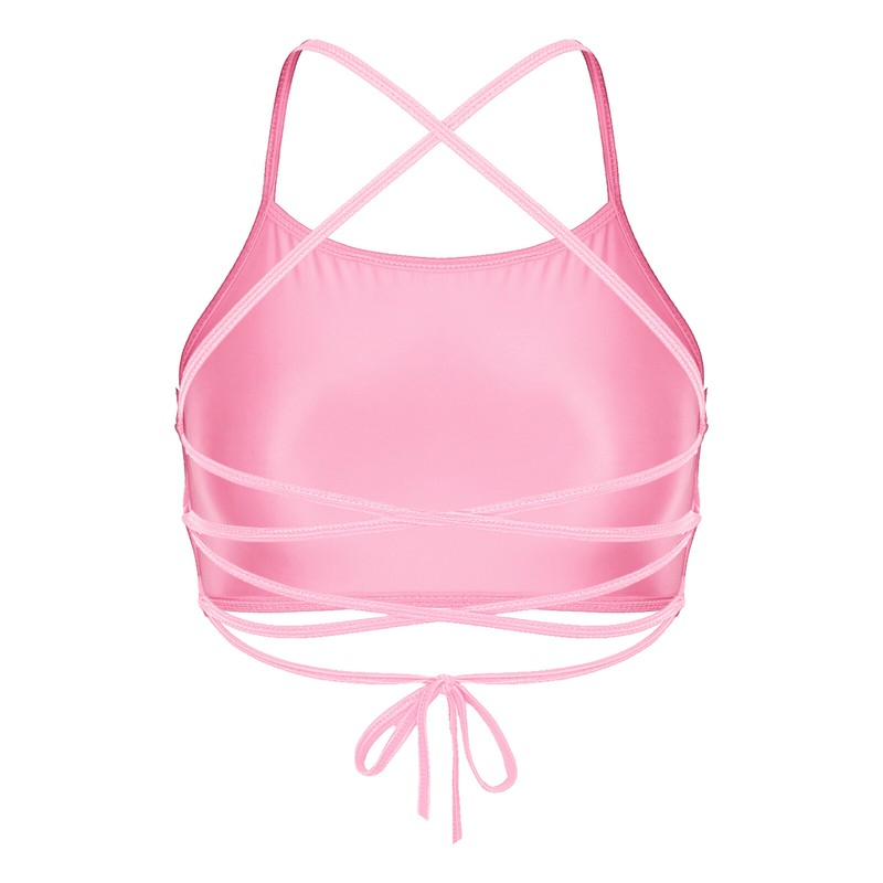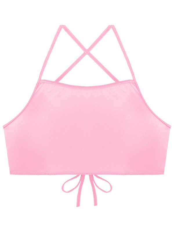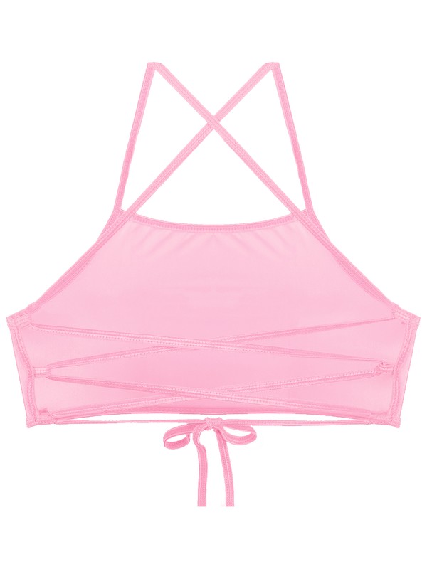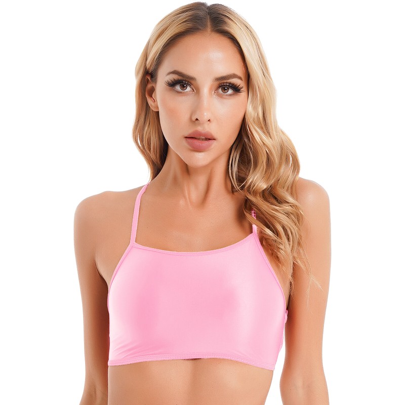 Backless crop top for women, back crisscross lace-up design, glossy surface.