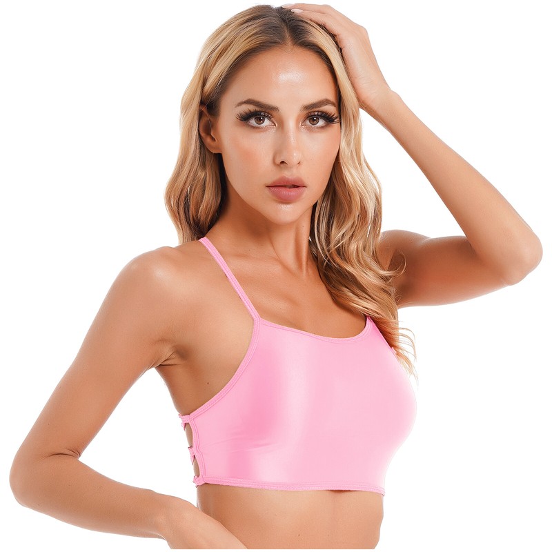 Womens Glossy U Neck Tank Tops Solid Color Sleeveless Crop Top Vest.