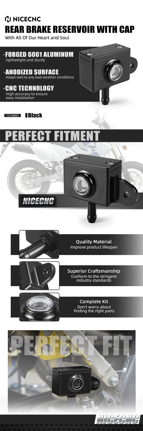 Are you angry about oil leakage when using factory fuel cap? Oil Leakage is because the whole fuel tank was factory designed too close to the exhaust part but used plastic as material, which will be deformed when being heated. Once that happens the fuel cap cannot gurantee its sealing. So We Made this product for YOU! Our NICECNC Fuel Cap, made from premium aluminum, will not be deformed by heat, promising good sealing.
