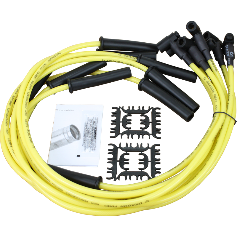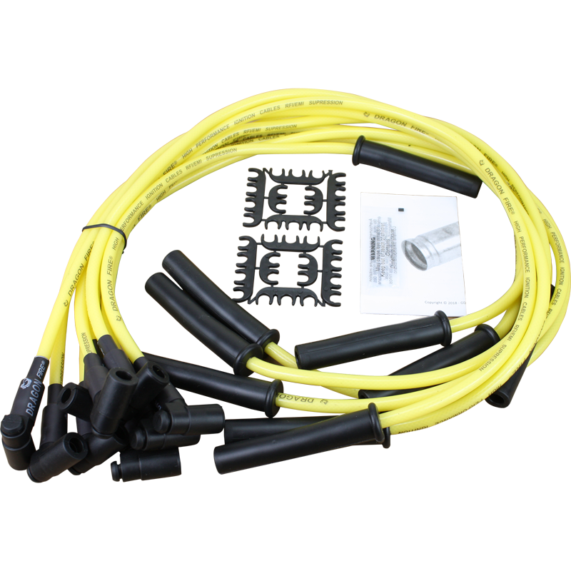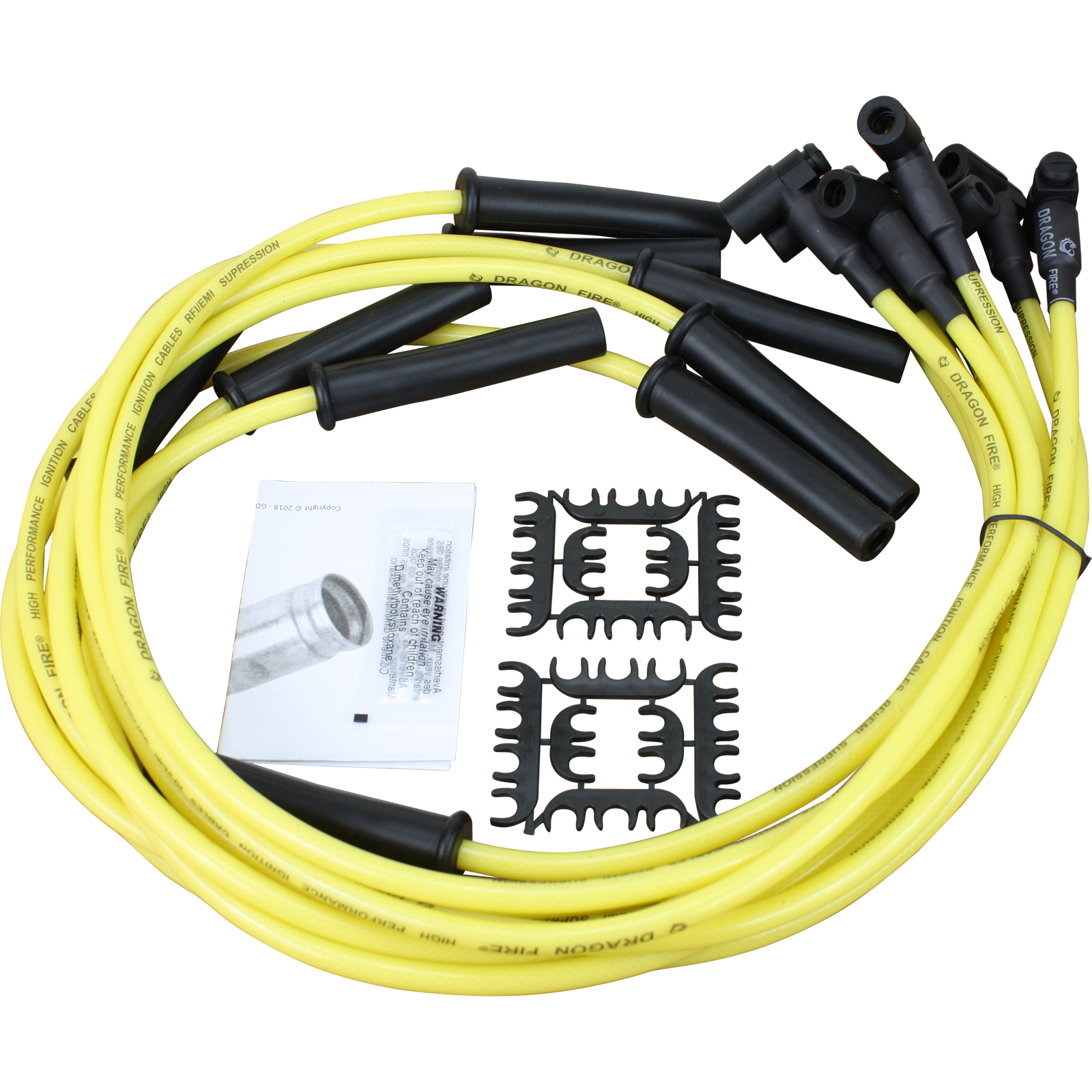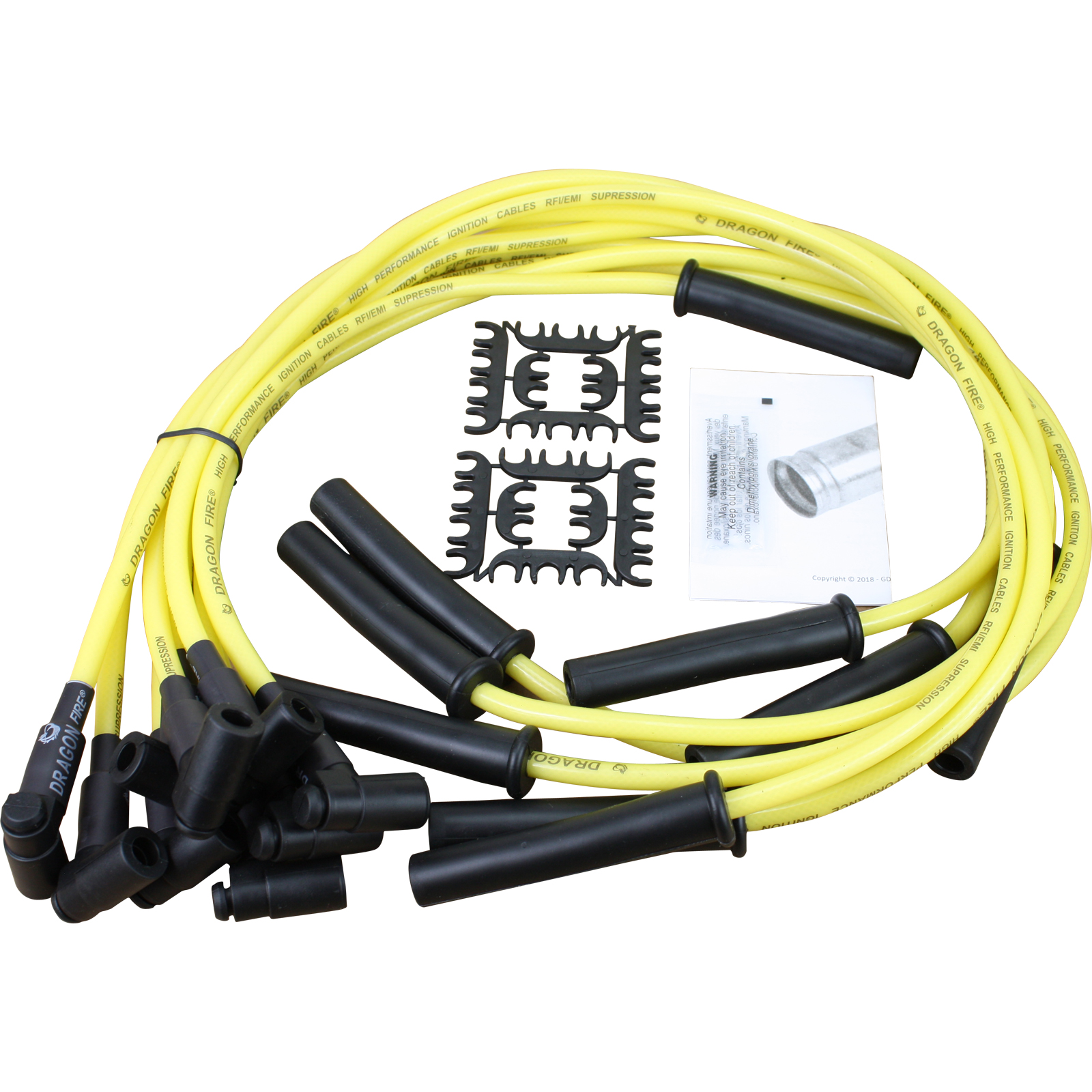 DragonFire Retro Transparent Yellow Spark Plug Wire Set Straight 180 Degree Boots Compatible Replacement For Chevy SBC BBC Male HEI Cap 283 305 307 327 350 383 396 400 427 454 Oem Fit PW90STR-DF-YR