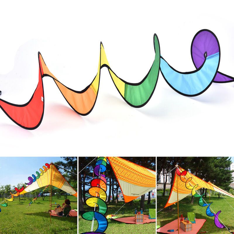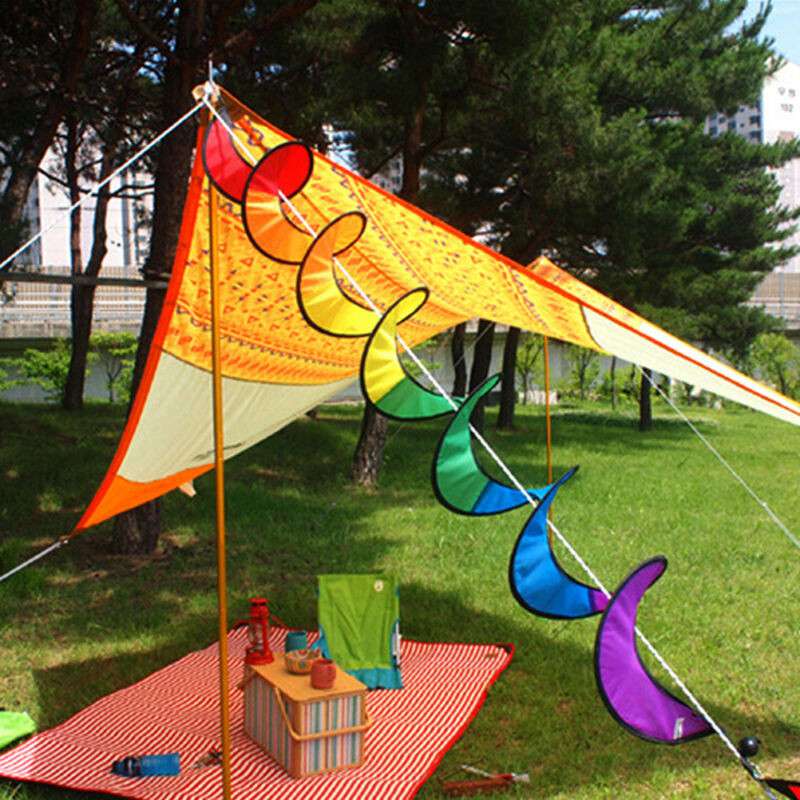 Home Garden Decor Foldable Tent Camping Rainbow Spiral Windmill Wind Spinner