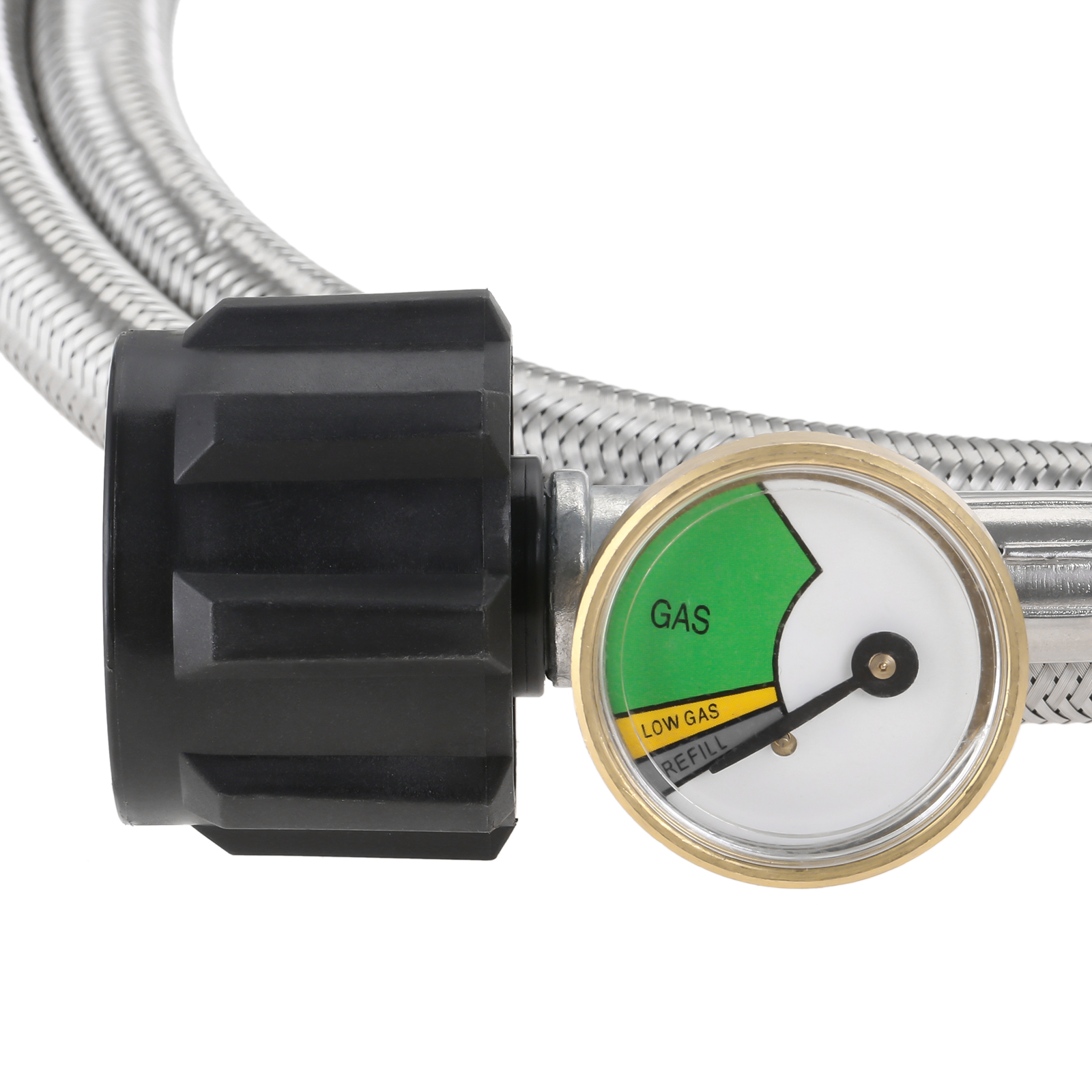 Item: Upgraded stainless braided propane hose adapter with guage