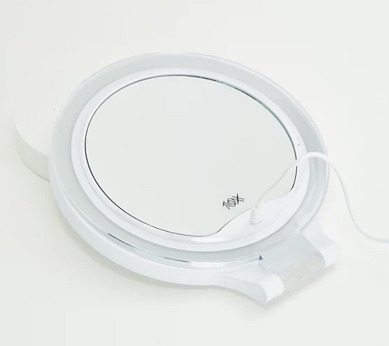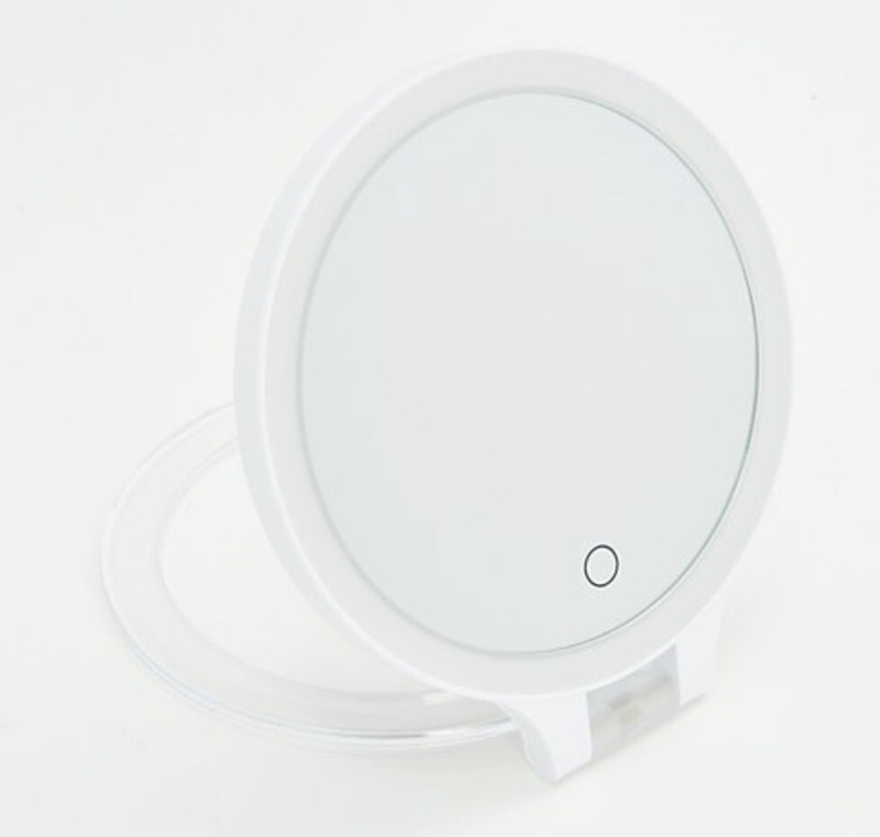 Approximate measurements: Overall 8.75" x 7.75" x 1"; 1x mirror 6.5"; 10x mirror 5.5"