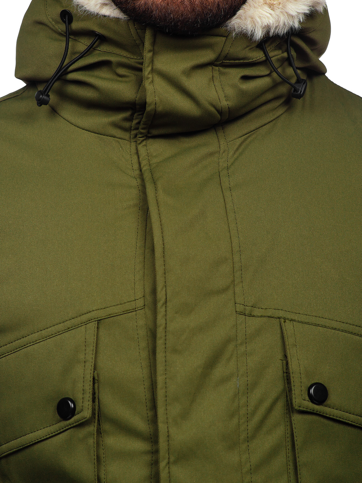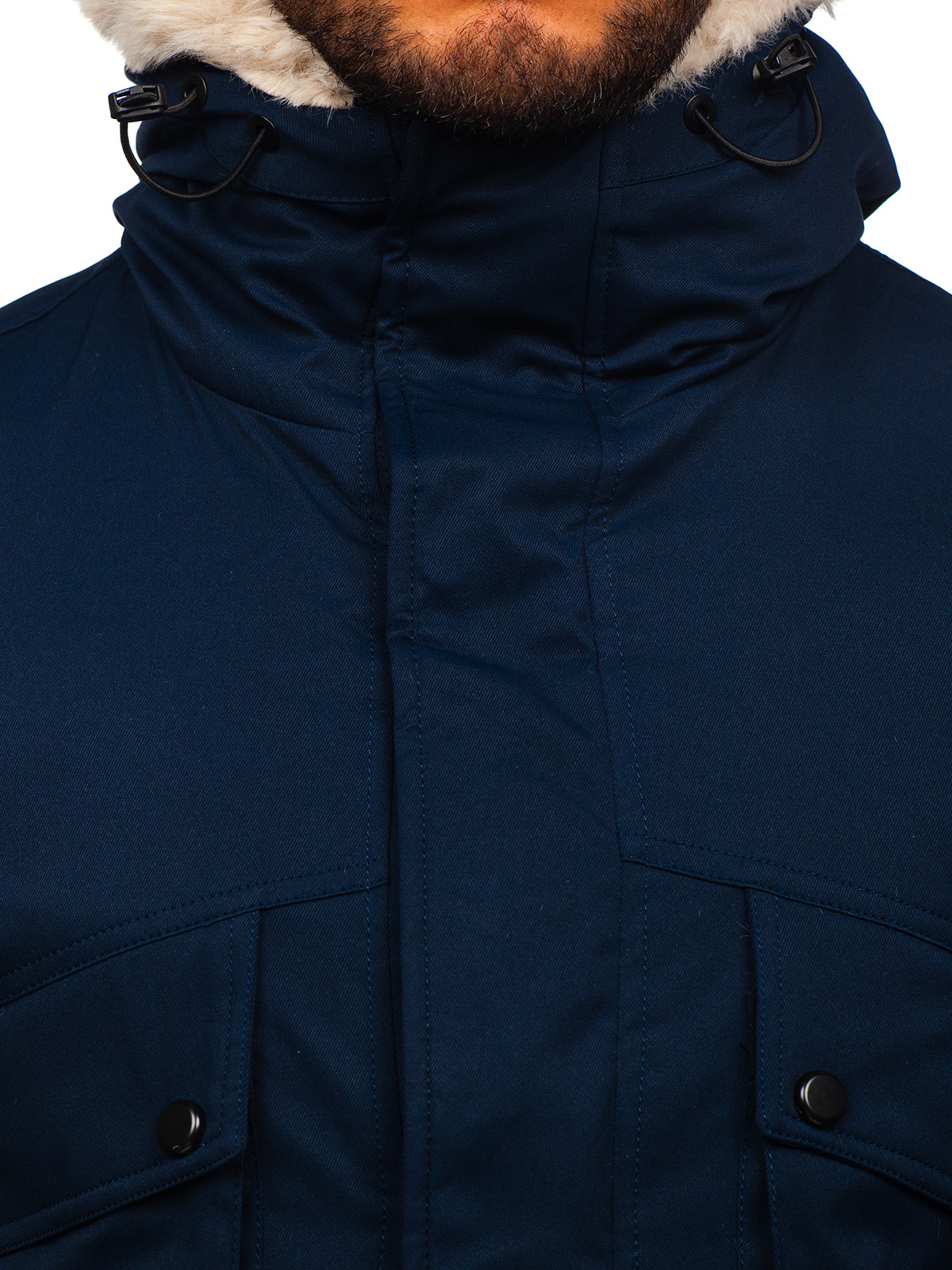 - Parka Jacke mit durchgehendem Reißverschluss und Drucknopfleiste