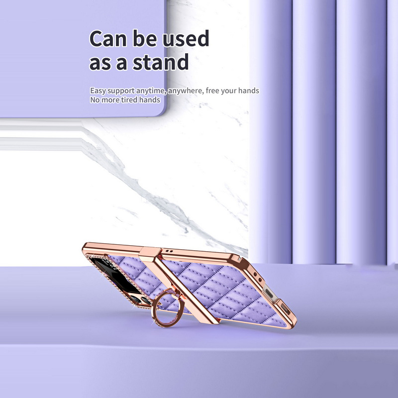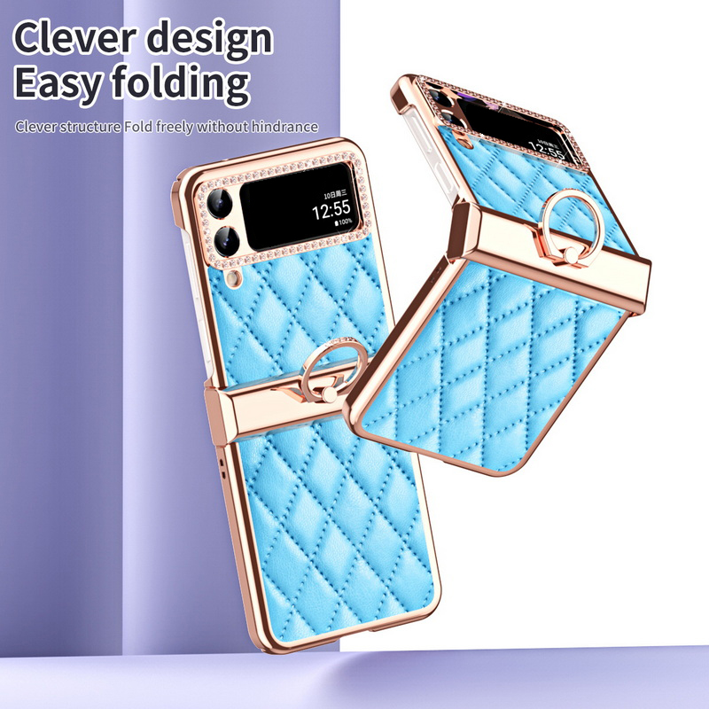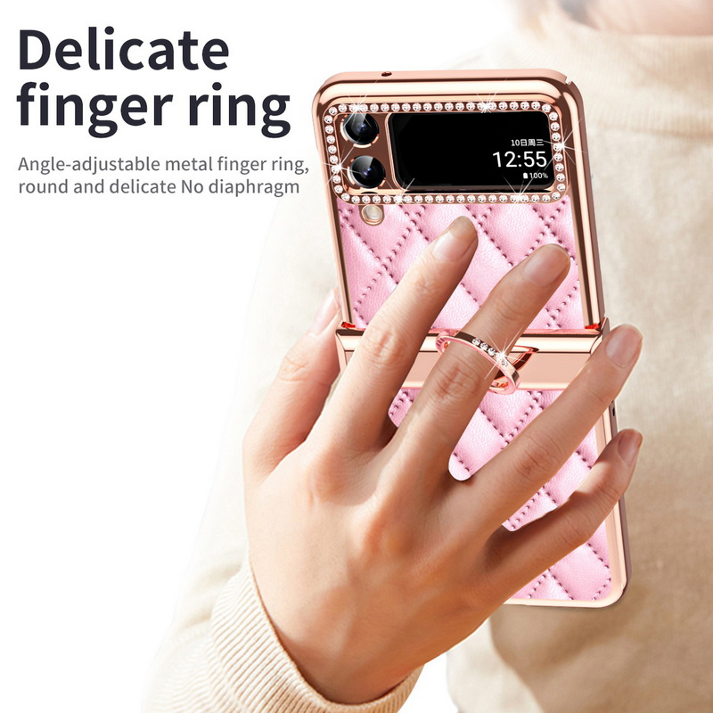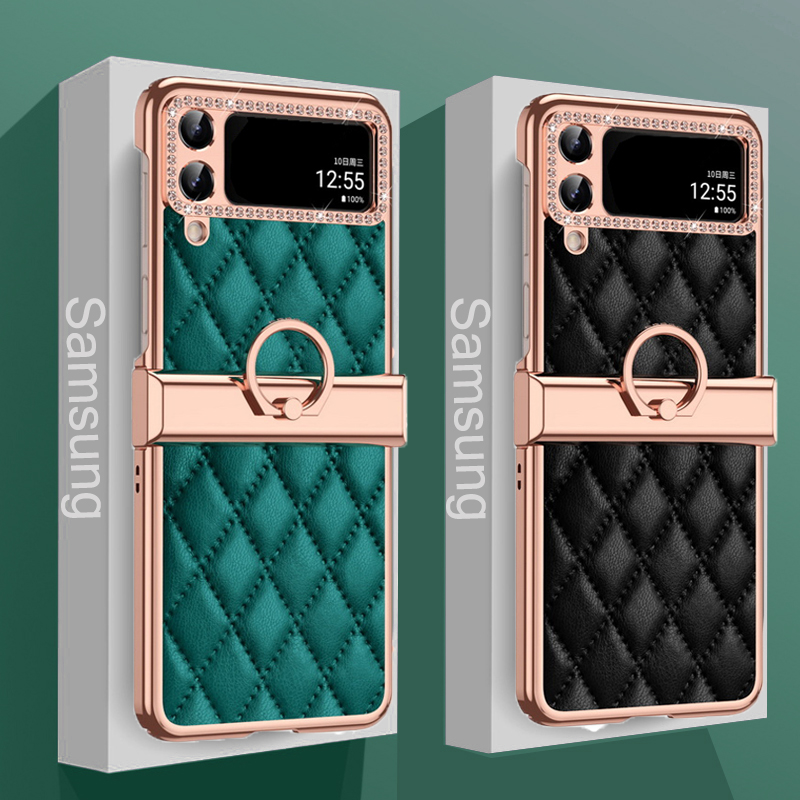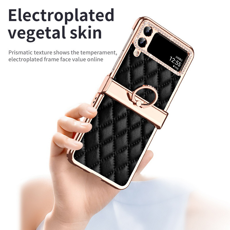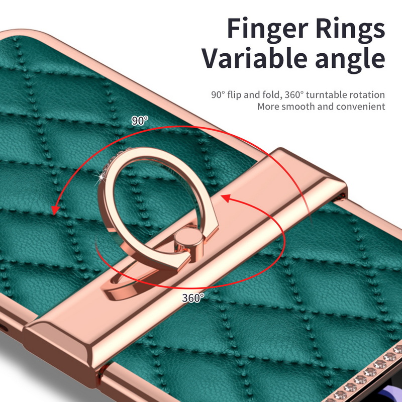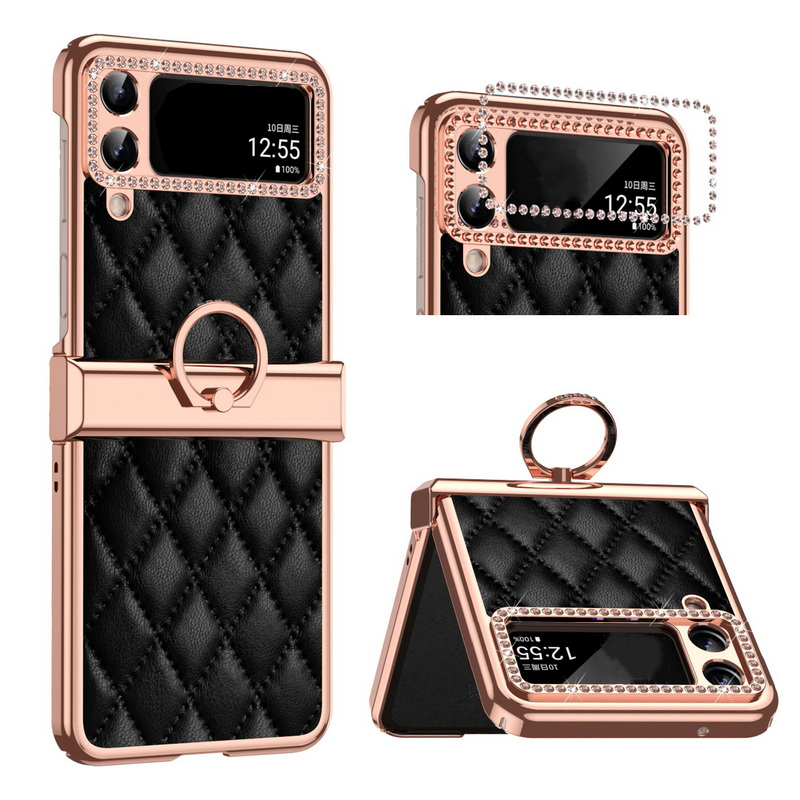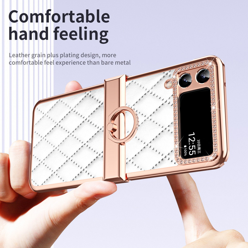 1. Electroplated all inclusive 2. Leather three-dimensional diamond pattern 3. Ring Hinge.