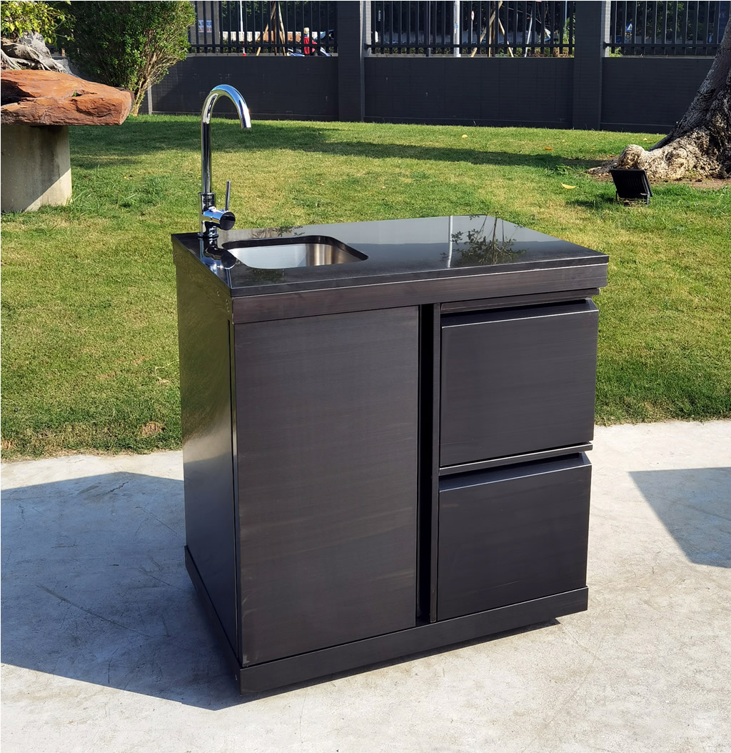 New 3 Piece Black Stainless Steel Outdoor Kitchen Grill + Twin Refrigerator + Sink