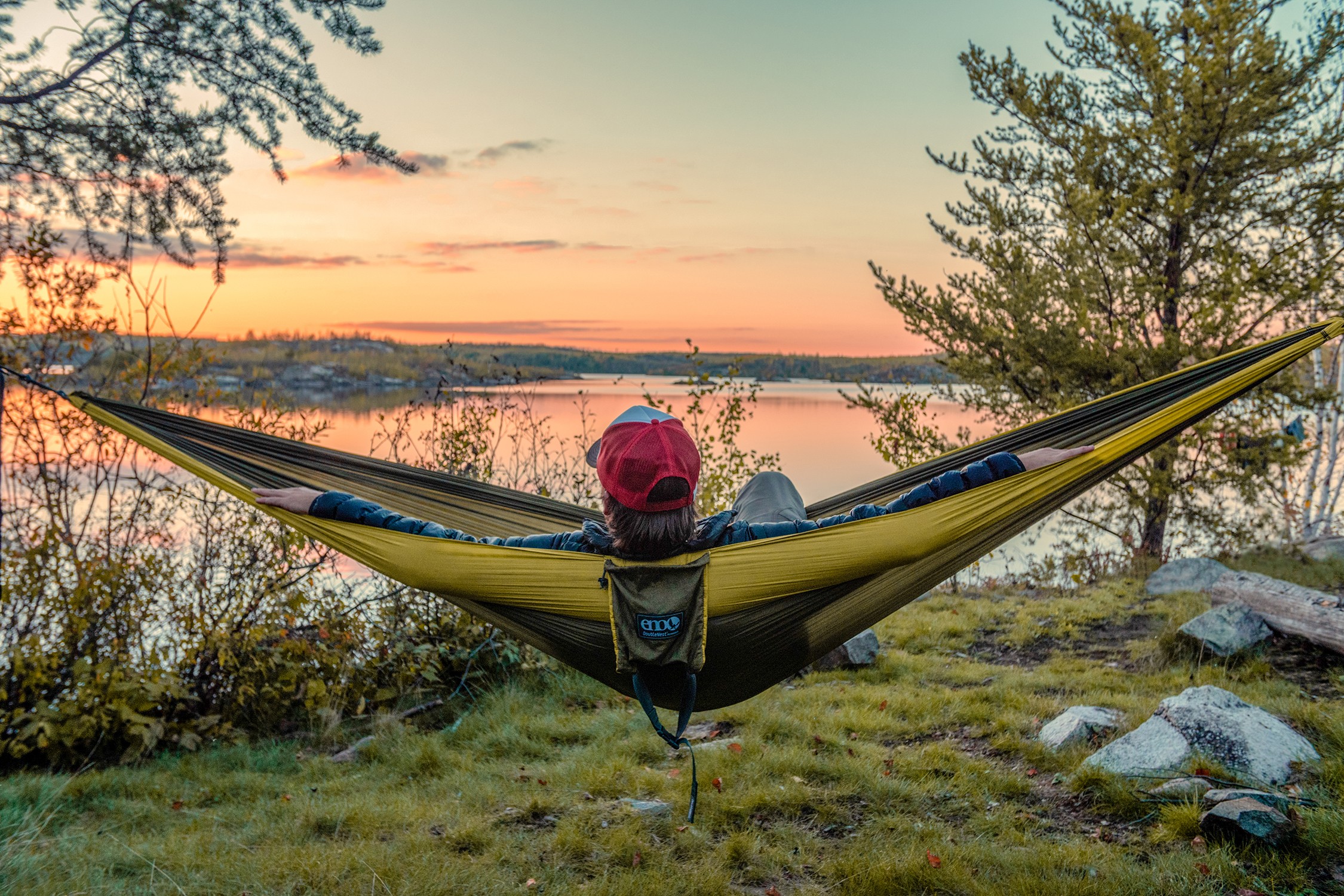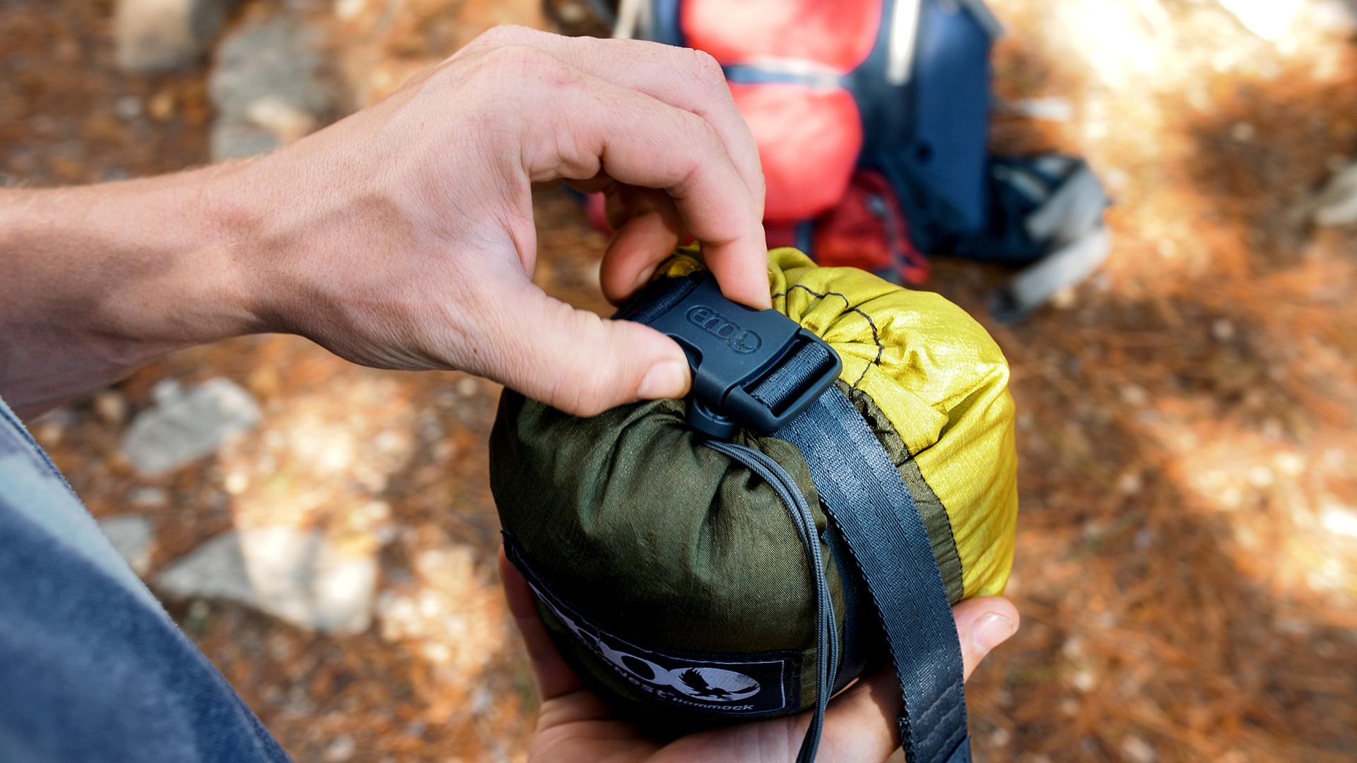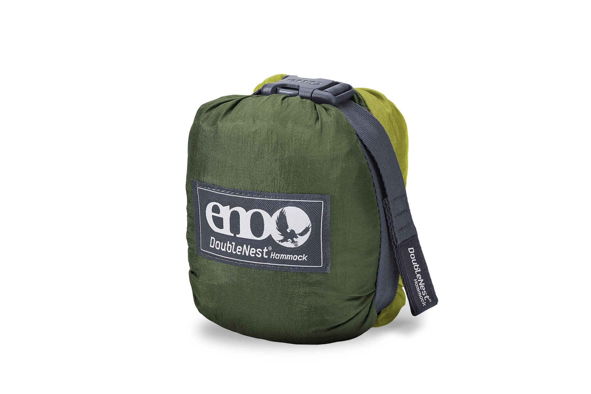 Die grüne Reisehängematte ist kompakt verpackt und passt gut in einen Rucksack. Praktisch für unterwegs, Urlaub und Wochenende und groß genug für zwei zum Chillen. Das Nylon Material ist atmungsaktiv und trocknet schnell.
