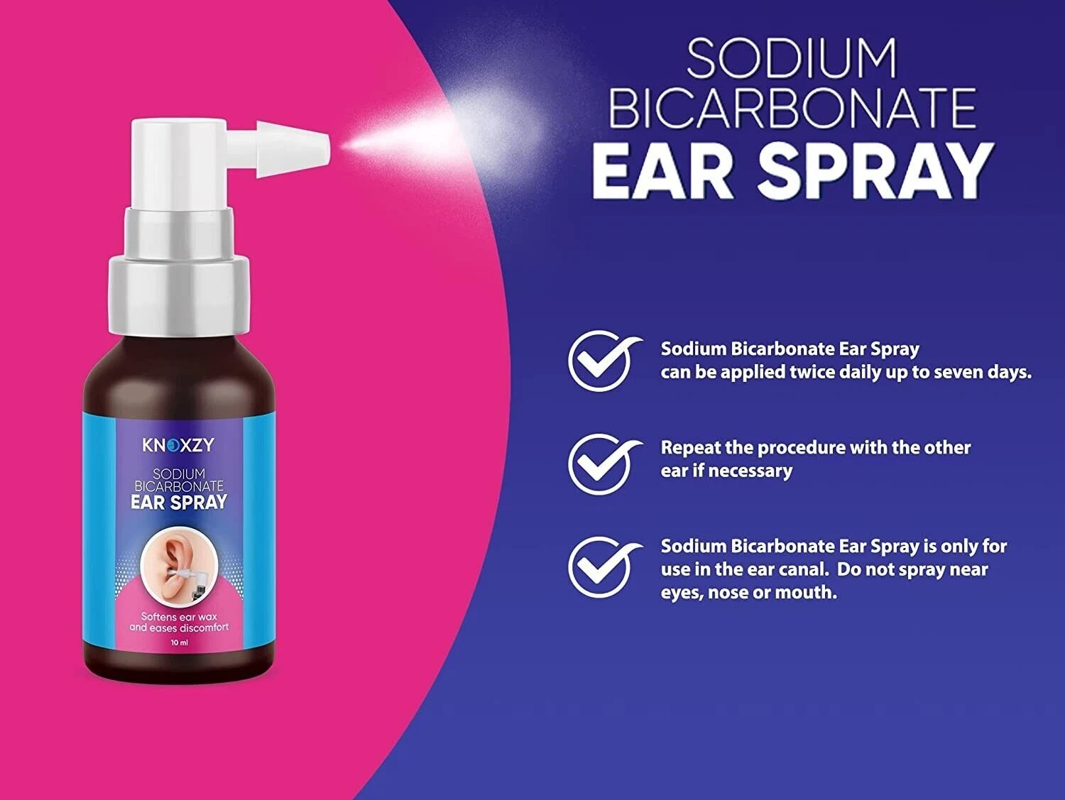 Knoxzy sodium bicarbonate ear spray softens and loosens the excessive hardened ear wax.