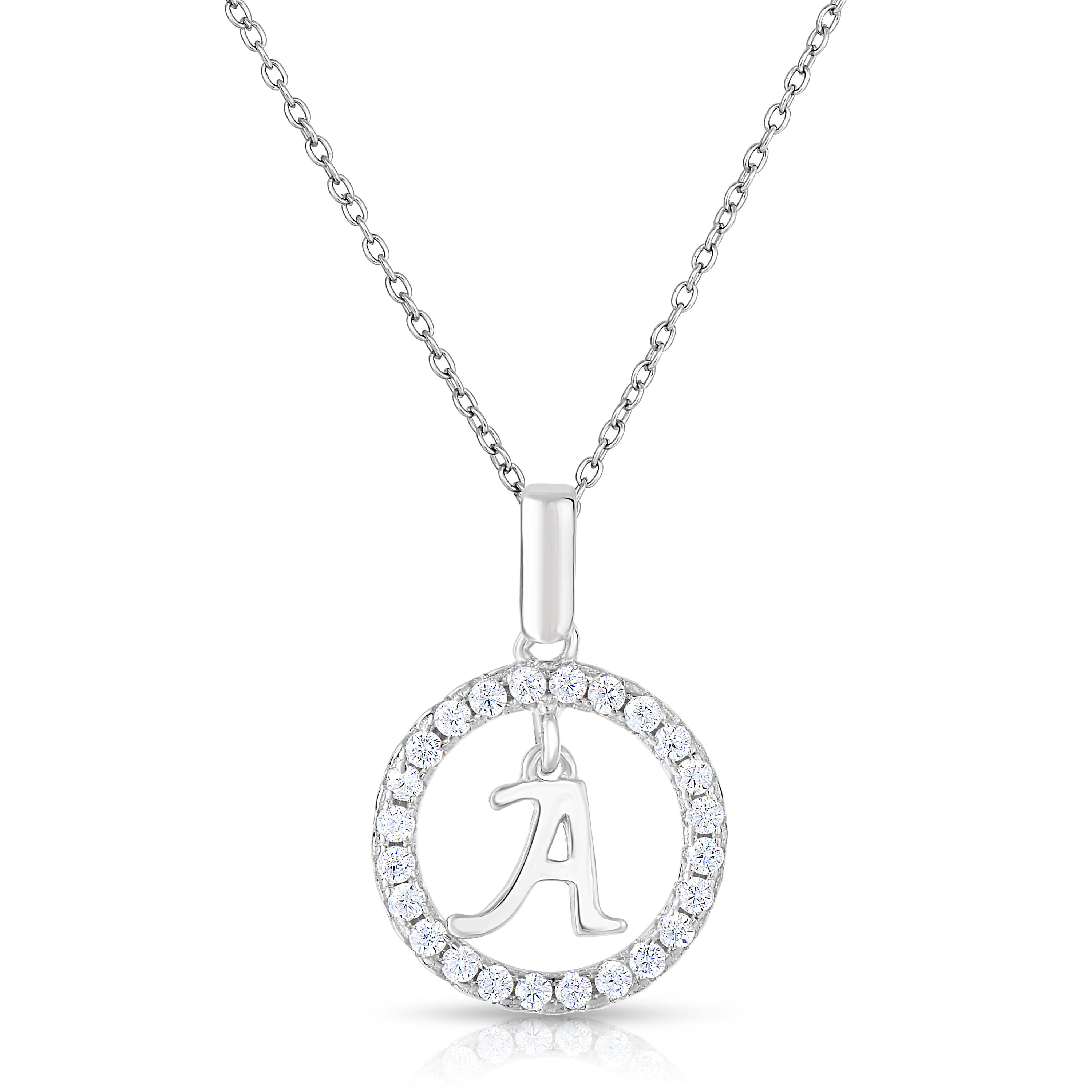 This sleek, contemporary initial necklace offers a simple and tasteful way to bring the style into your own wardrobe. Our initial pendant necklace is handcrafted from solid 925 sterling silver with a smooth, hand-polished finish and cool sheen. The dainty pendant is a capital letter initial (of your choice, with all letters from A-Z available) adorned with pave-set, dazzling, super clear white cubic zirconia stones are used to accent the letter and bring luxurious sparkle like a diamond. Best of all, this solid silver necklace is coated with an anti-tarnish plating to make sure it doesn't fade or change color over time. Designed to be worn solo or layered with multiple different pendant charms for a bigger statement to complete your look - it's for everyone! Available in all 26 letters and in cable chains of sizes 16 inch and 18 inch to help you find the perfect match.