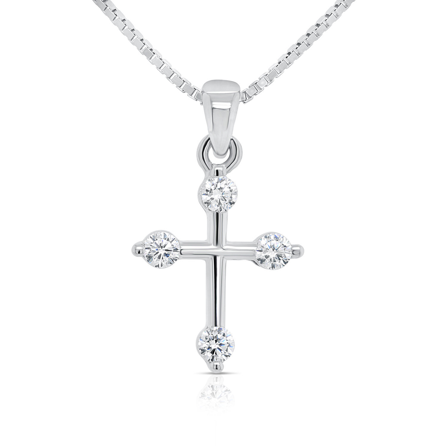 TILO Jewelry Solid 925 Sterling Silver Dainty Cross Pendant Necklace with Simulated Diamond CZ Stones Love Friendship Minimalist Religious Charm Pendant Chain Necklace Handmade Fine Jewelry Gift for Women, Girls, Unisex