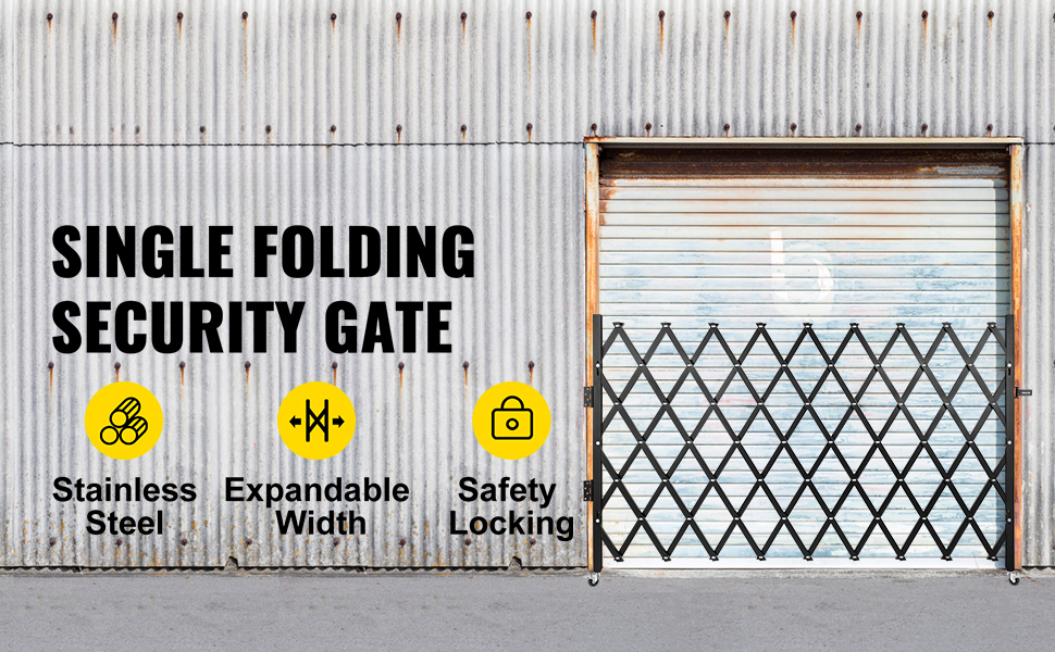 The width of our single folding gate can expand from 4" to 75". Height: 51.57". It offers physical protection for your assets, belongings, or goods, giving your property a professional look.