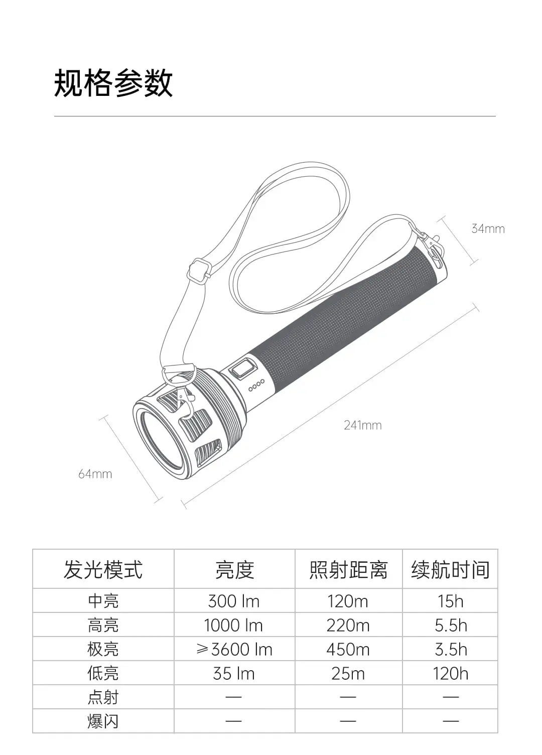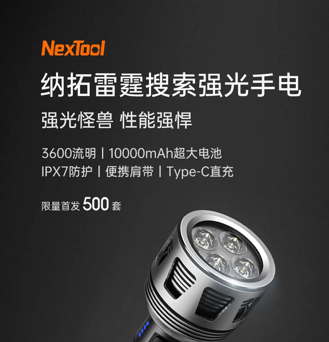 NEXTOOL Glare 10000mAh Portable Flashlight 3600lm/450m 5 Modes Seaching Torch