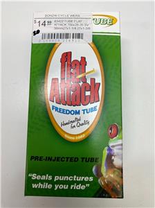 Flat Attack Freedom Sealant Schrader Tubes - 700x28-35c, 27x1-1/4" to 1-3/8". 34mm long Schrader valve. Preinjected with Flat Attack tire sealant. Seals punctures up to 1/8"