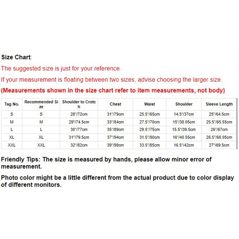 | Etikett Nr. | Empfohlene Größe | Schulter bis zum Schritt | Brustumfang | Taillenumfang | Schulterumfang | Ärmellänge |