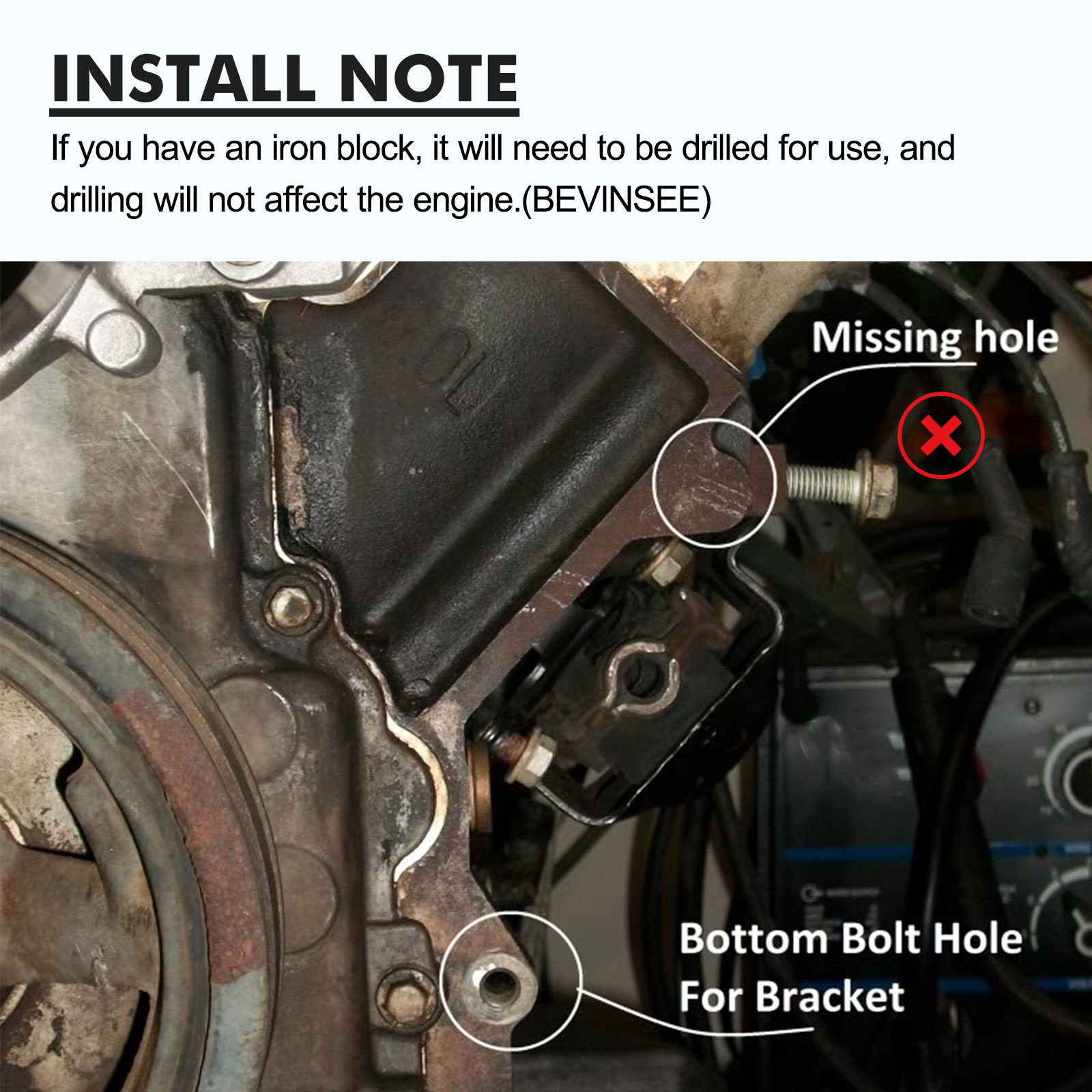 On truck engines with only 1 alternator mounting hole you will be required to drill and tap a 2nd M10-1.5MM hole in the engine block.