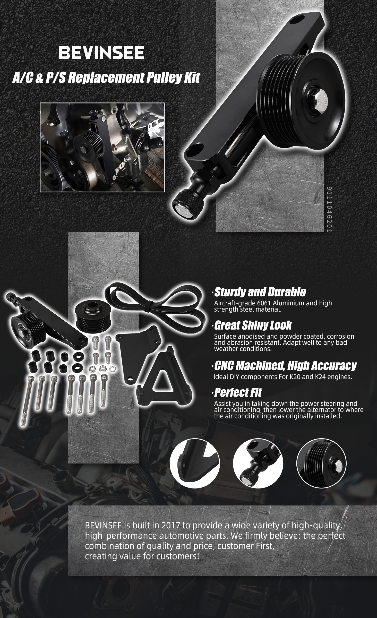 BEVINSEE K Series A/C & P/S Replacement Pulley Kit for Honda For Acura K20 K24 K Swap RSX