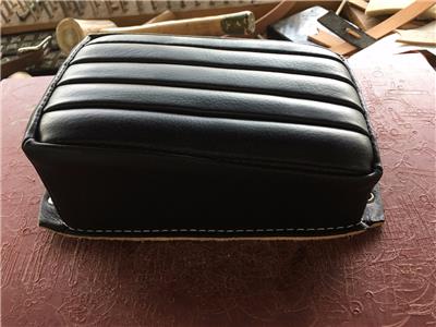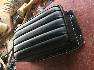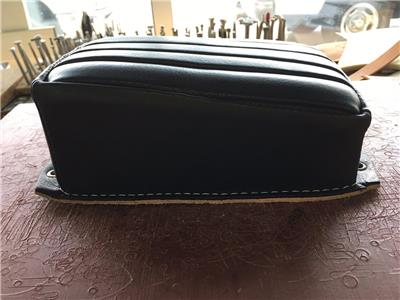 Imbottitura per passeggero in stile Bates MADE IN USA e realizzata a mano con pelle di alta qualità. Pieghe in vecchio stile Tuck & Roll. Colore nero (le foto non rendono giustizia) ma può essere disponibile anche in altri colori. Cuscino passeggero - 5,5 pollici di larghezza e 5,5 pollici di lunghezza, gli occhielli sono distanziati di 3 pollici l'uno dall'altro. Sedile passeggero di fascia alta da 3,5 pollici a fascia bassa da 2,5 pollici di schiuma. 314-392-7841 o inviaci un messaggio per domande. Grazie per aver acquistato con Rick Phillips Leather.