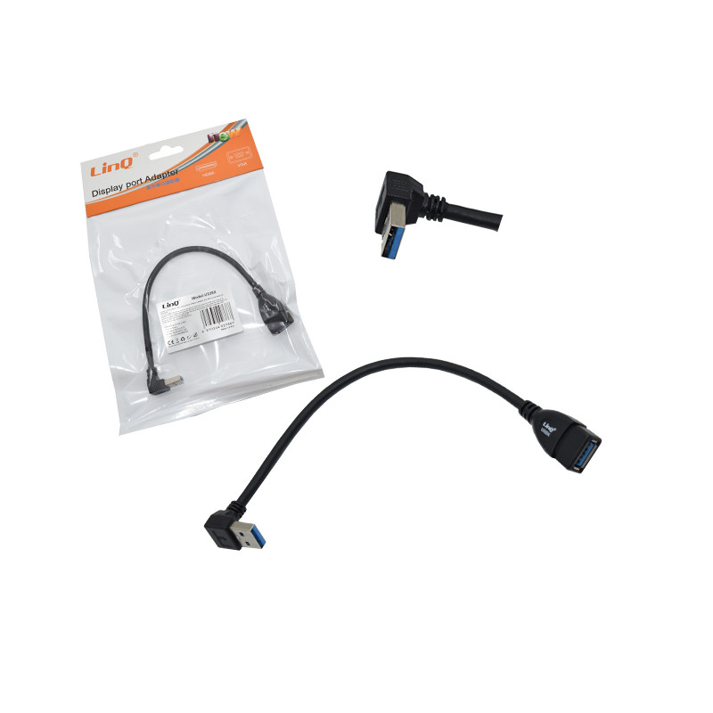 MINI PROLUNGA CAVO USB 3.0 AM / AF 90 GRADI VERSO IL BASSO, MINI PROLUNGA MASCHIO FEMMINA