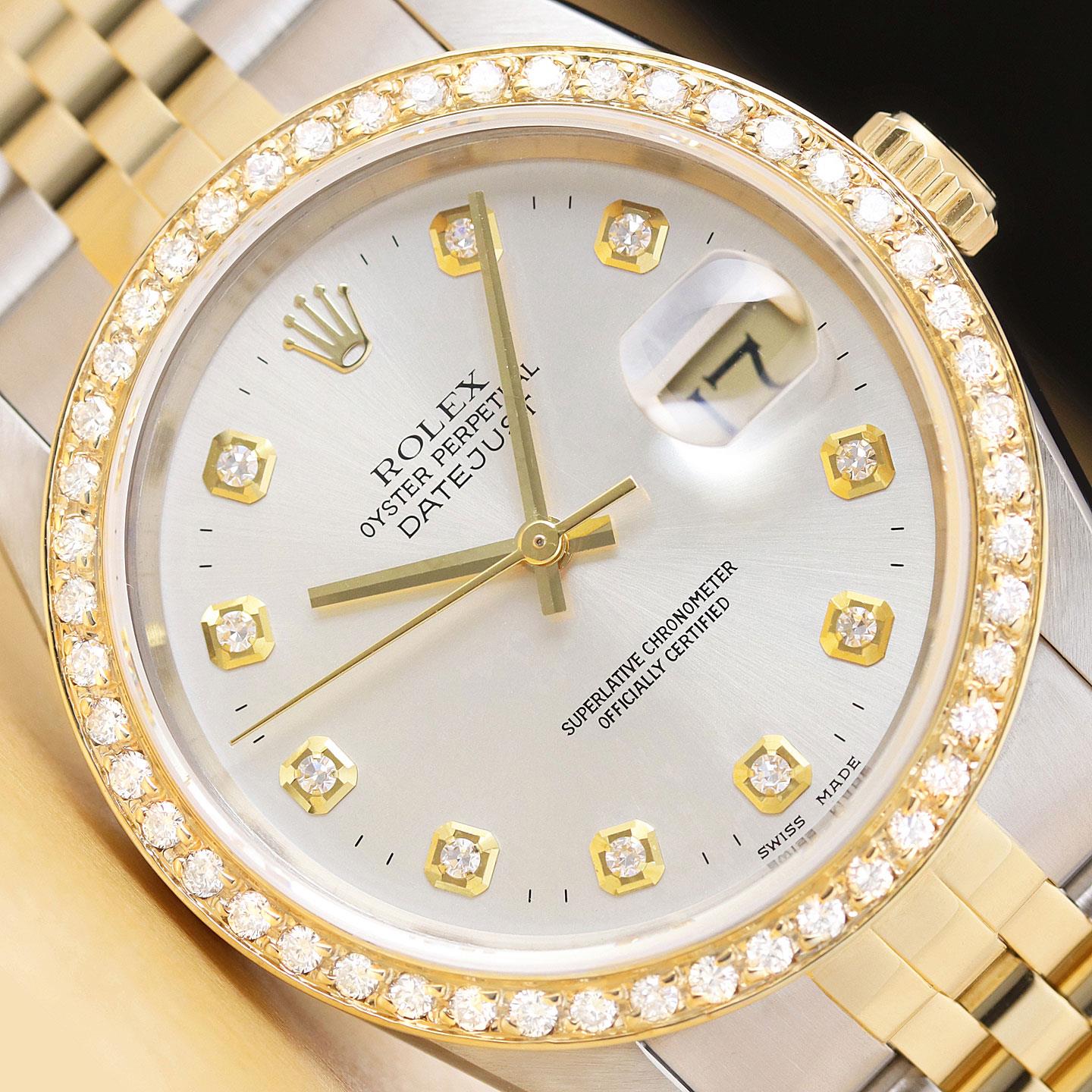 ROLEX MENS DATEJUST 16233 18K YELLOW GOLD STEEL DIAMOND 2-TONE SILVER DIAL WATCH