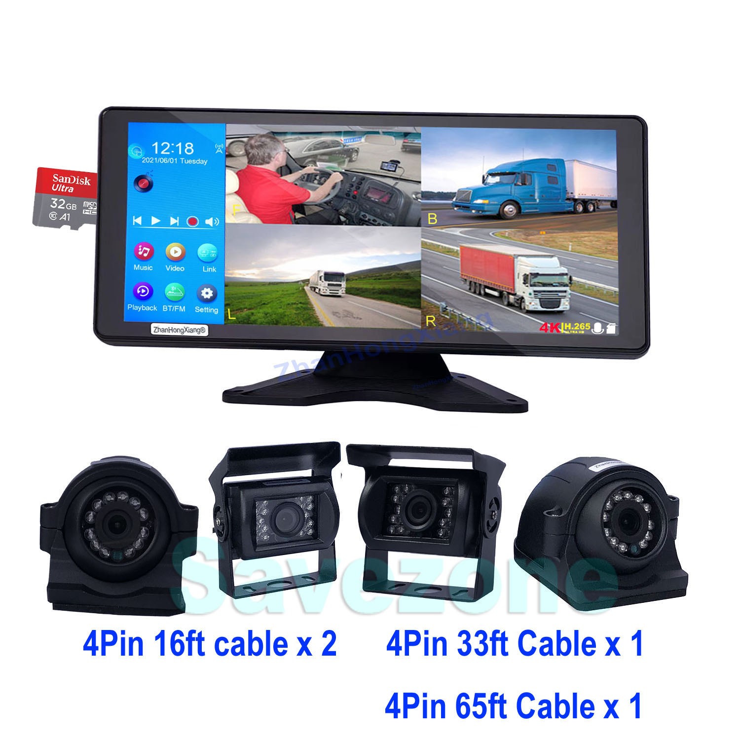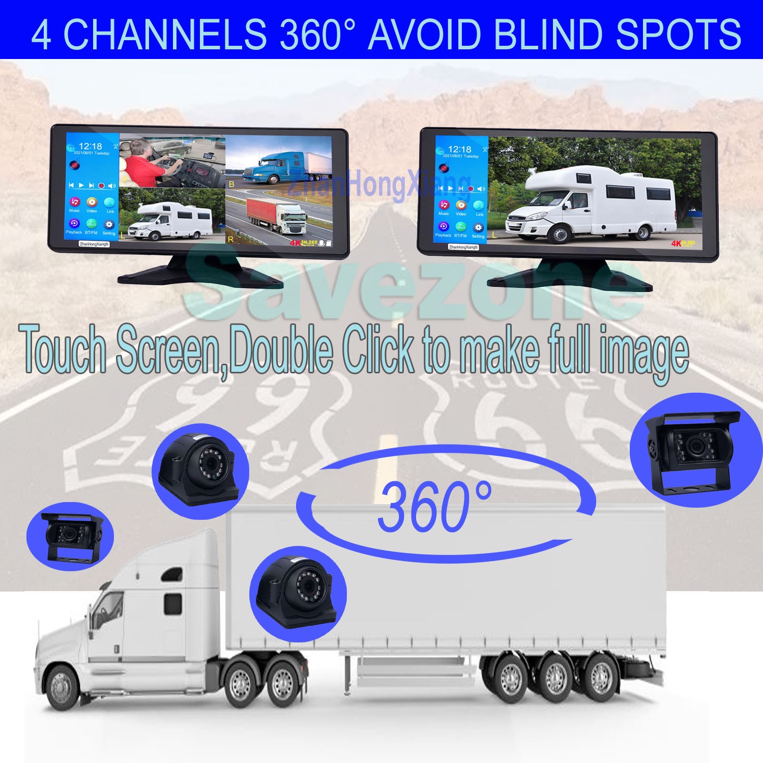 10.36" 4K Split Touch Screen DVR Monitor+ 4 x HD 1080P RV Reverse Backup Camera