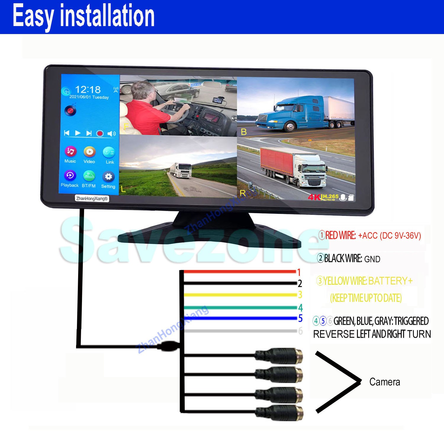 This is 4 pcs HD 1080P Backup Camera and 10.36 inch touch screen Monitor System with DVR