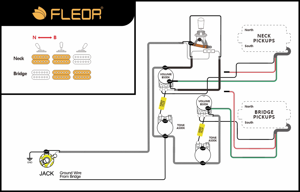 FLEOR Prewired 2T2V Wiring Harness Kit 3-Way Toggle Switch for LP Style Guitar