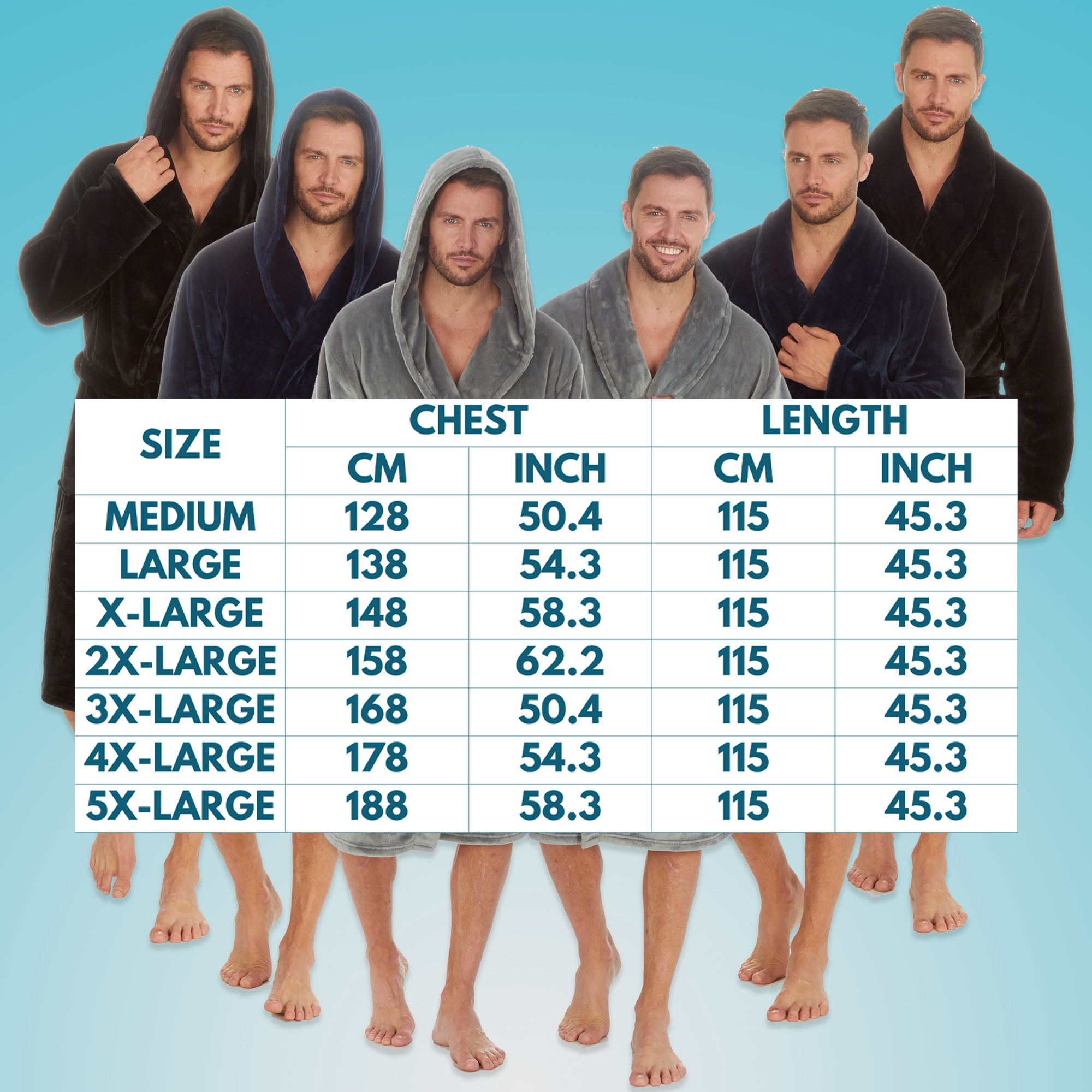 • MENS GOWNS - The Mens Dressing Robes are available in a range of sizes such as: Medium, Large, X Large, 2X Large, 3X Large, 4X Large, 5X Large in three classic colours - Grey, Black and Navy.