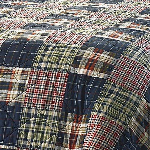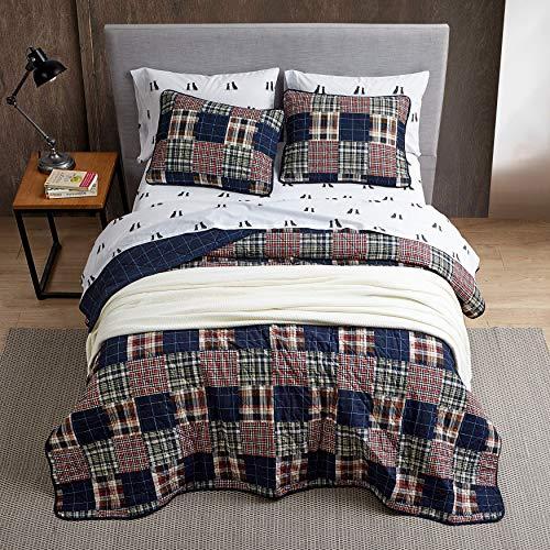 Timeless tartans and windowpane plaids mix in a multicolor block patchwork in tones of dusted indigo, Scarlet, pine, and ivory. This soft cotton quilt reverses to a crisp windowpane check that also trims the edges of the quilt and shams for a clean tailored finish. The diamond quilt Stich is the perfect complement to the square block design. Coordinate with our Eddie Bauer sheets and blankets. Quilt set is 100percent cotton, reversible and prewashed for added softness.