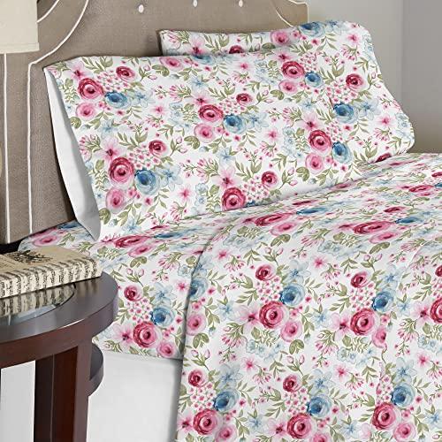 Pointehaven Flannel Deep Pocket Set with Oversized Flat Sheet, Queen, Sylvan