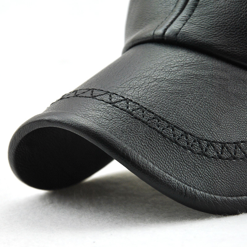 Men's Autumn Winter PU Lace-up Baseball Caps Outdoor Sport Warm Adjustable Leather Hats