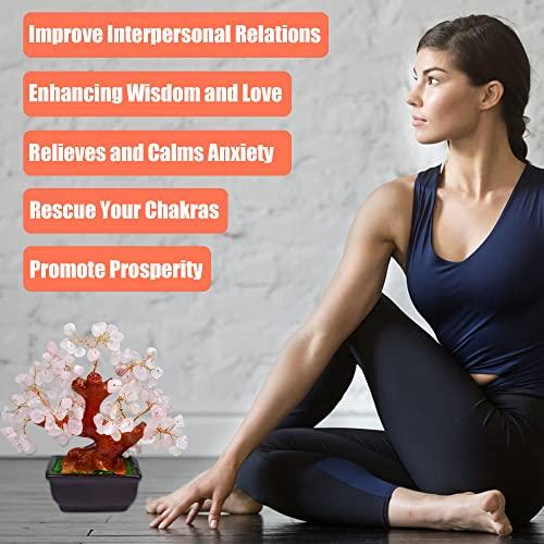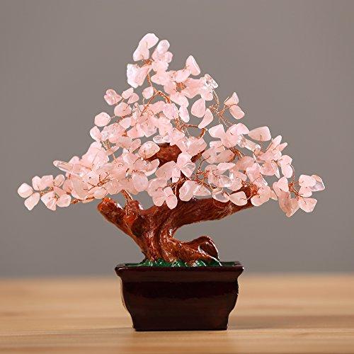 Parma77 Feng Shui Natural Rose Pink Quartz Crystal Money Tree Bonsai Style