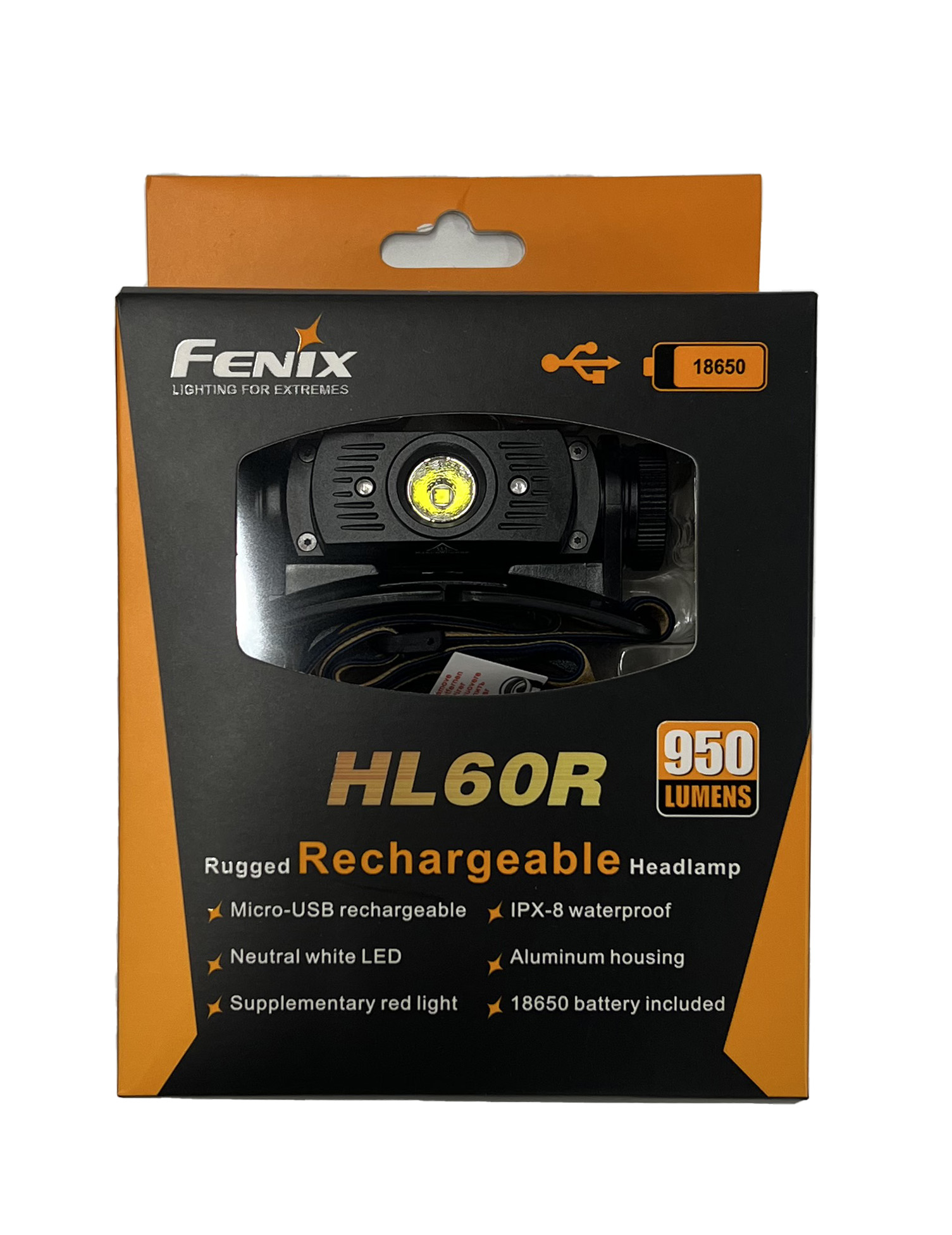 A versatile light that leaves your hands free, the black HL60R Headlamp from Fenix is characterized by its bright white light output, dual low-power red lights, and a compact, durable form factor. The primary Cree XM-L2 T6 LED offers a maximum brightness of 950 lumens, as well as four lower brightness settings down to 5 lumens. Two red LEDs provide a comfortable 1 lumen output and are suitable for preserving night-adjusted vision or preventing eye strain when viewing nearby objects. The light is delivered with an adjustable head strap, and its housing is constructed from anodized aluminum alloy and features an IPX8-rated, impact-resistant design for use in trying conditions. Additionally, it runs on either two CR123A lithium batteries or one 18650 rechargeable lithium-ion battery, which can be charged in-light via the micro-USB port.