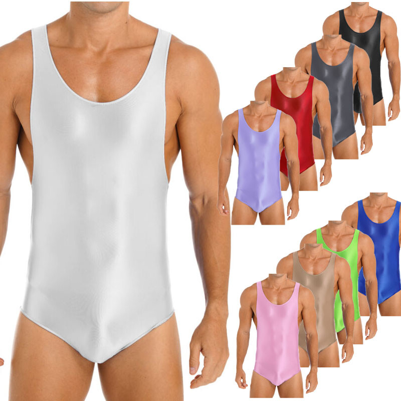 Men Shiny One-piece Mankini Swimsuit Pouch Thong Jockstrap Suspender Bodysuit