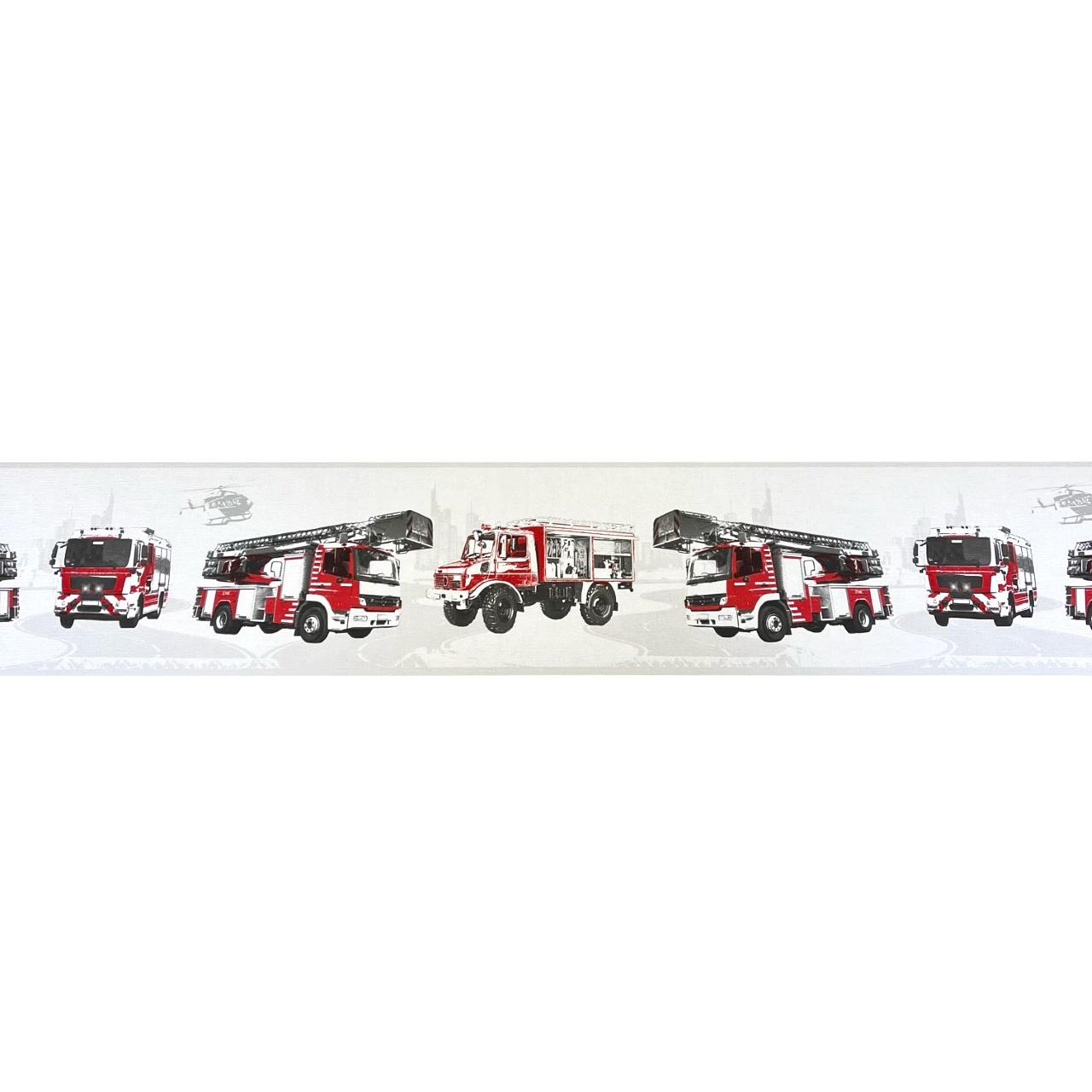 AS Creation Fire Truck Red White Wallpaper Border Helicopter Textured Kids Room