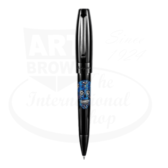 Montegrappa celebrated one of the most exciting and unique festivals in the world, Mexico’s famed Day of the Dead, or ‘Día de Muertos’, with a new handcrafted Fortuna collection. The multi-day holiday focuses on gatherings of family and friends to remember those who have passed. To create the very special pens, Montegrappa designers make deep-cut engravings on the cap and barrel that are filled in with pearlized enamels. The main image is a skull – the famous motif of the celebration – offered in blue. Each pen is unique: the enamel is painted entirely by hand; each color is applied separately and must dry completely before a new layer can be added. The black resin Fortuna’s modern silhouette is enhanced with ruthenium-plated fittings including the rolling ring clip.