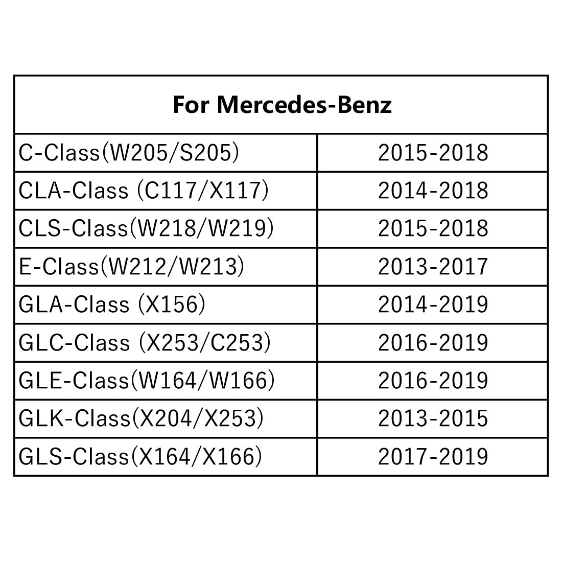 Suitable car models:Mercedes Benz C S E GLA GLC GLK