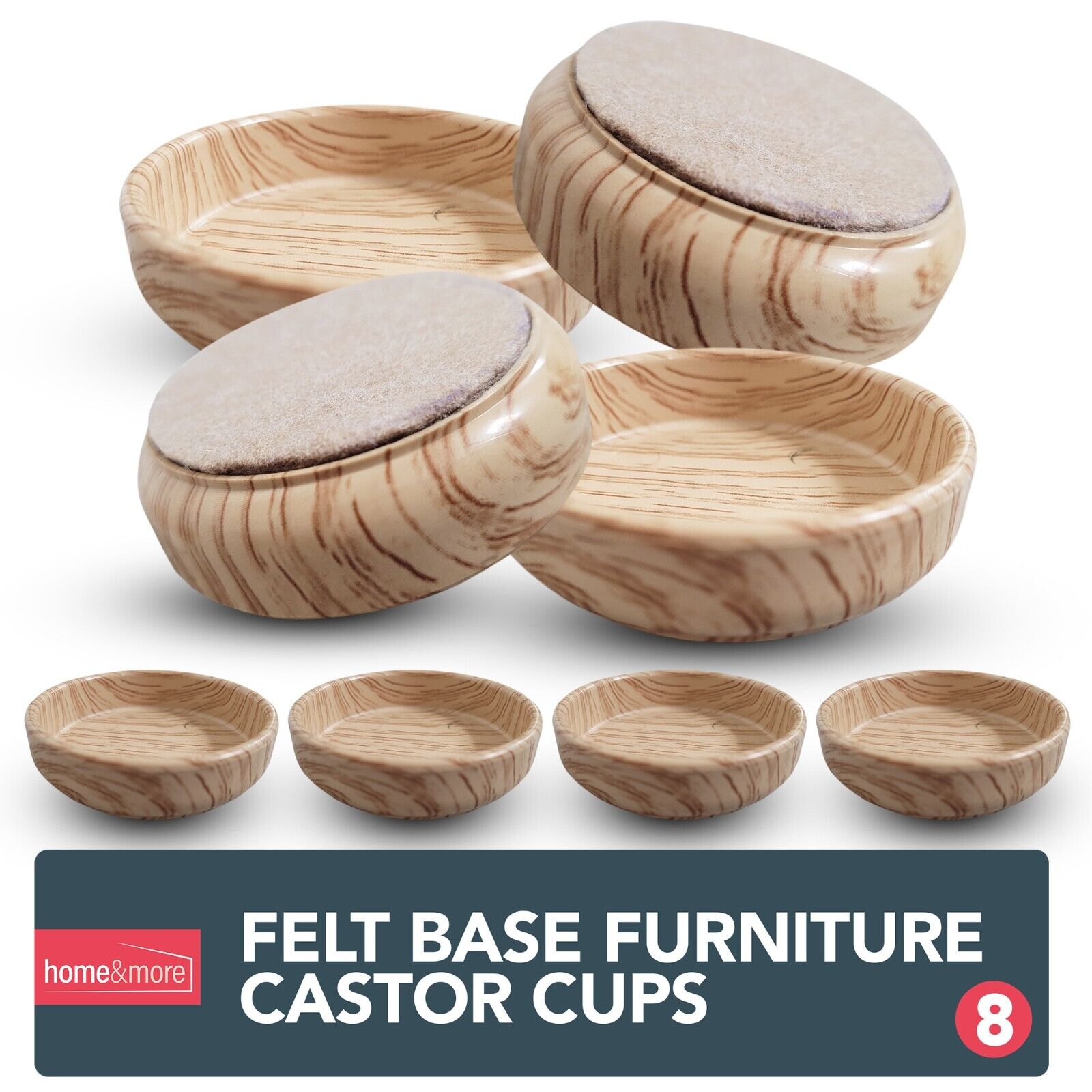 8 Premium Felt Castor Cups Non Slip Caster Floor Chair Leg Furniture Protectors