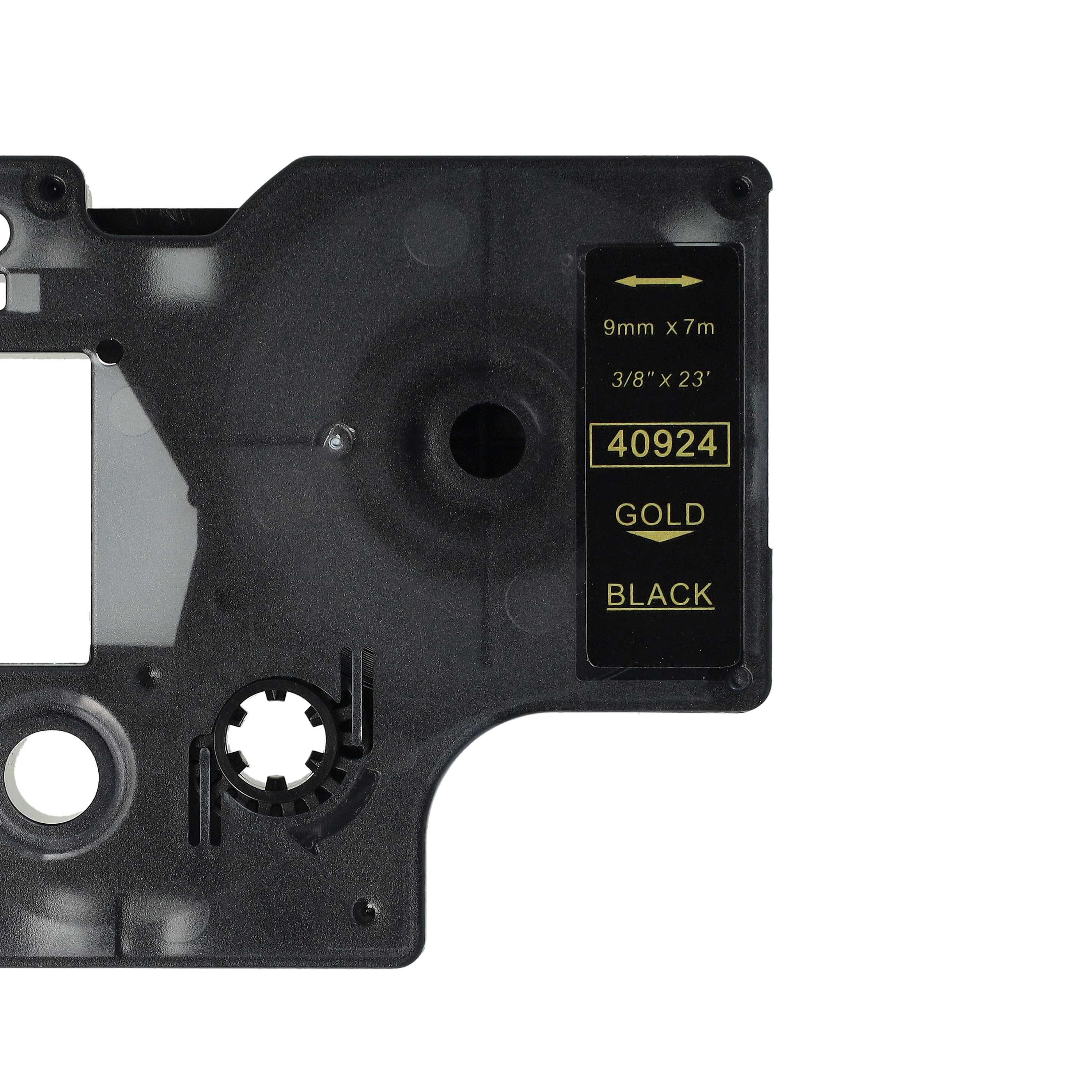 vhbw 1x cartuccia per Dymo 5000, 2000, 5500, 1000+, 1000, 4500, 3500 etichettatrice, dispositivo di etichettatura - 9 mm, oro su nero