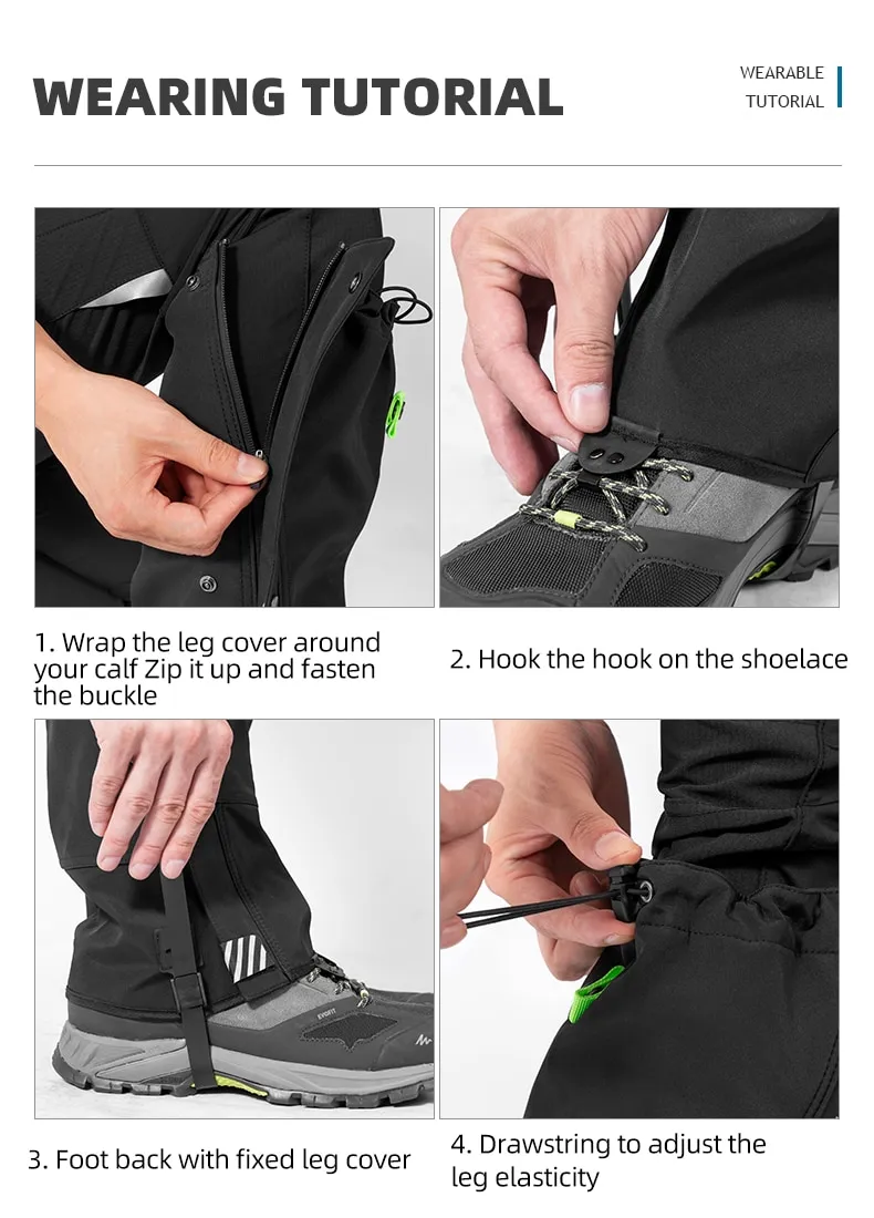 • The outdoor gaiter keeps snow out of your shoes while skiing, hiking, cross-country skiing or glacial climbing.