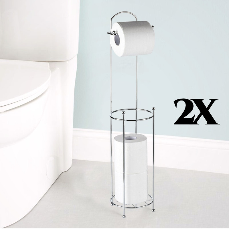 This brand new contemporary design toilet roll holder is a free-standing chrome plated holder that will keep your toilet paper nice and organized. This product has a stylish modern design and an easy to clean wipe clean chrome finish. This stylish and contemporary roll holder is completely free-standing and does not require wall mounting. It is lightweight and easily portable, you can move it around the room. These toilet roll holders can hold one roll at a time while storing two or three more in reserve. This product's sleek modern design means that it can fit easily into the most bath-rooms decor.