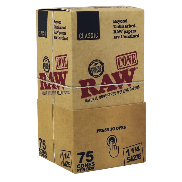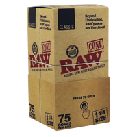 Raw Classic Cone 75PK 1 1/4 is a natural, unrefined smoking product.