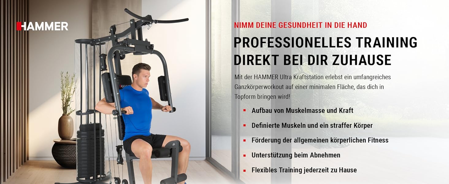 HAMMER Ultra Multifunktions-Kraftstation für zu Hause, Latzug, Curl