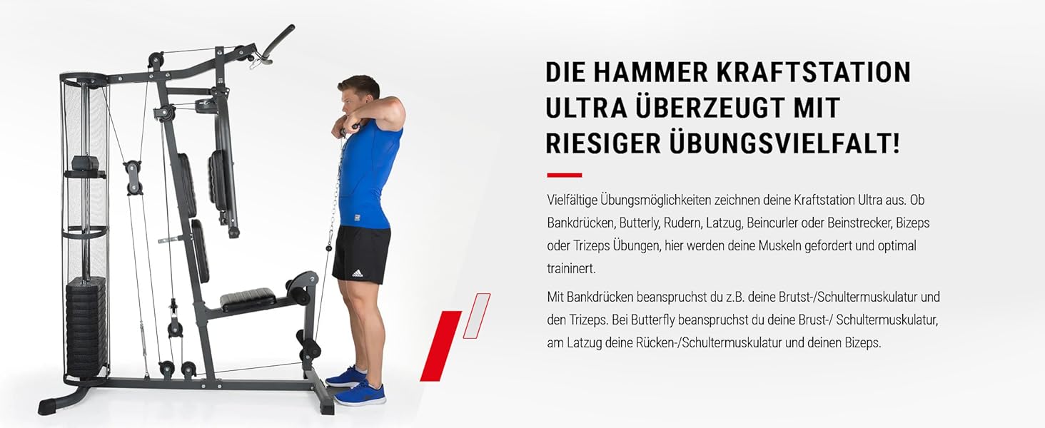 - KRAFTTRAINING FÜR ZU HAUSE: Die Fülle an verschiedenen Übungen, die die Kraftstation Ultra abdeckt, ist enorm, so dass eine Vielzahl von Muskelgruppen in einem Workout mit der Ultra angesprochen werden können. Sie haben ein vollständiges Training für einen minimalen Platzaufwand – das perfekte Gerät für zuhause!