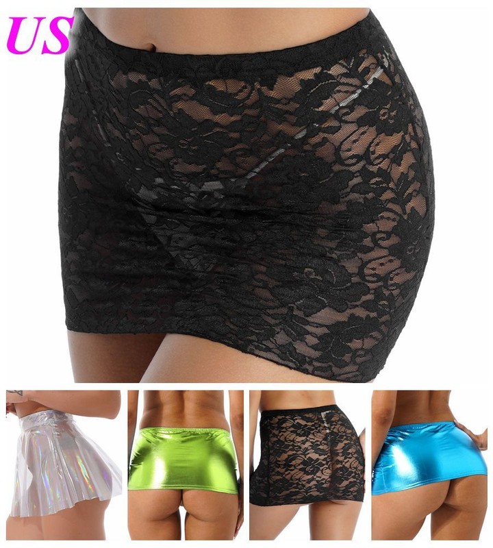 See-through Mesh Pencil Skirt Lingerie Nightwear Sheer Miniskirt for Women.