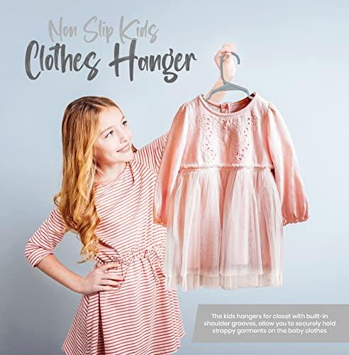 IMPECCABLE FABRICATION - The kid’s clothes hangers comprises of reinforced plastic with built-in shoulder grooves, to prevent the baby clothes from slipping or falling off the hangers