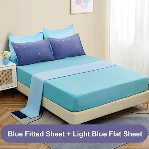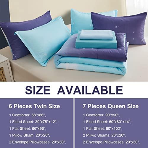 Kid Bedding Sets Collections: This Twin Size 6 Pieces Bed in A Bag includes 1 Twin Comforter: 68"x86", 1 Blue Fitted Sheet: 39"x75"+12", 1 Light Blue Flat Sheet: 66"x96", 1 Pillow Sham: 20"x26", 2 Envelope Pillowcases: 20"x30".